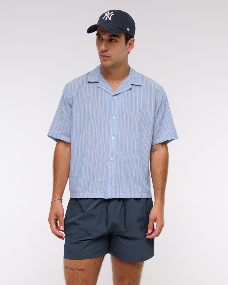 Woven boxer 3-pack with multi-stretch fabric, functional front fly and encased elastic waistband with a woven patch logo. Imported.