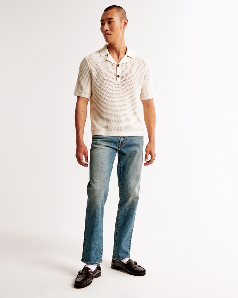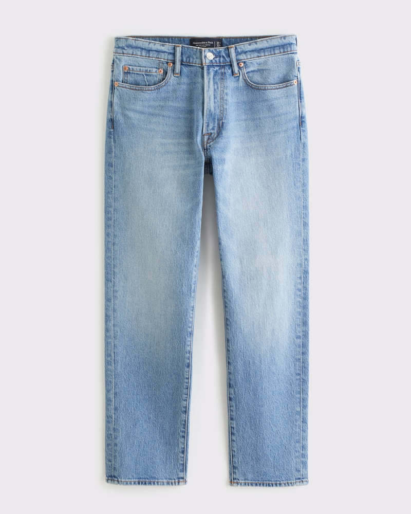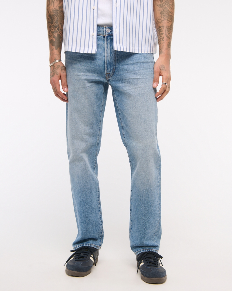 Our 90’s Straight jeans that are straight through the thigh and leg with a slightly higher rise, made in our vintage stretch fabric and broken-in denim feel. Features a brown wash and clean hem. Imported.