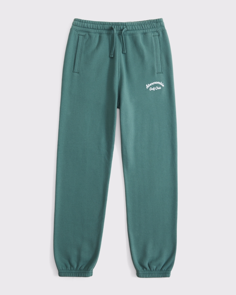 Our new comfy sweatpants in our soft, go-to classic fleece fabric and loose fit, with a print Abercrombie Golf Club logo detail, pockets, cinched cuffs and drawstring waistband. Pairs perfect with its matching Abercrombie Golf Club sweatshirt! Imported.