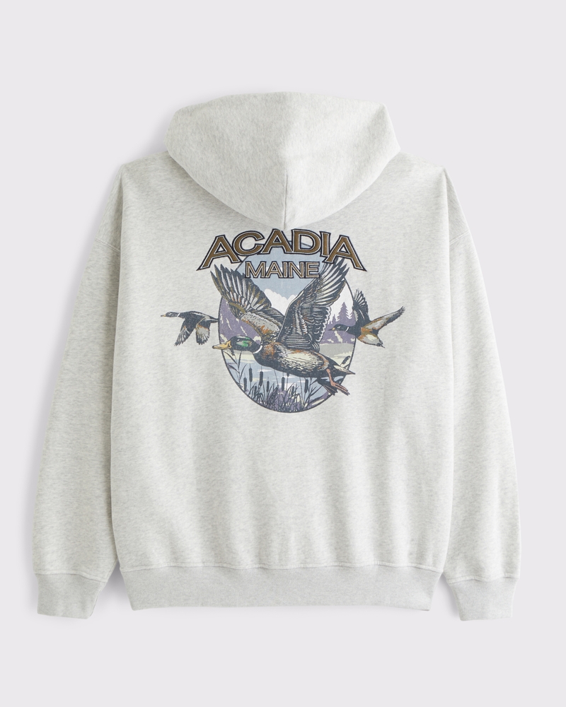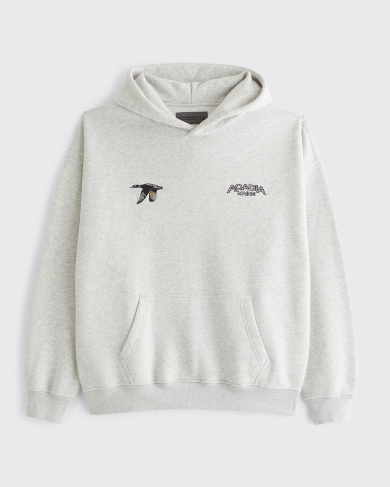 Comfortable oversized hoodie in our softAF fabric and drop-shoulder fit, featuring Acadia-inspired graphic details at chest and back, front pouch pocket and banded hem and cuffs. Imported.