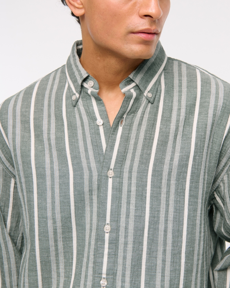 Long-sleeve button-up shirt in our new lightweight and breathable fabric, that’s perfect for hot sunny days. Features a relaxed-fit silhouette, classic button-down collar and straight hem. Imported.