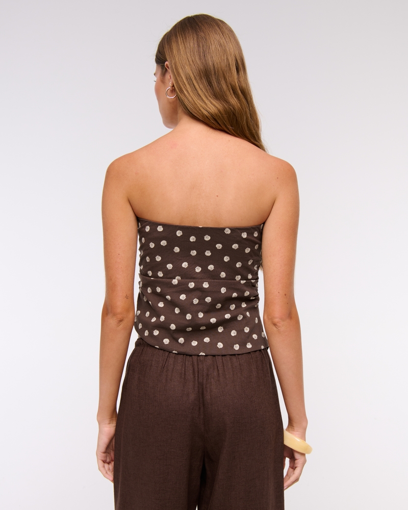 Flattering strapless top in our soft cotton-blend fabric, featuring an asymmetrical neckline, ruching details along the bodice and on-trend pointed hem. Imported.
