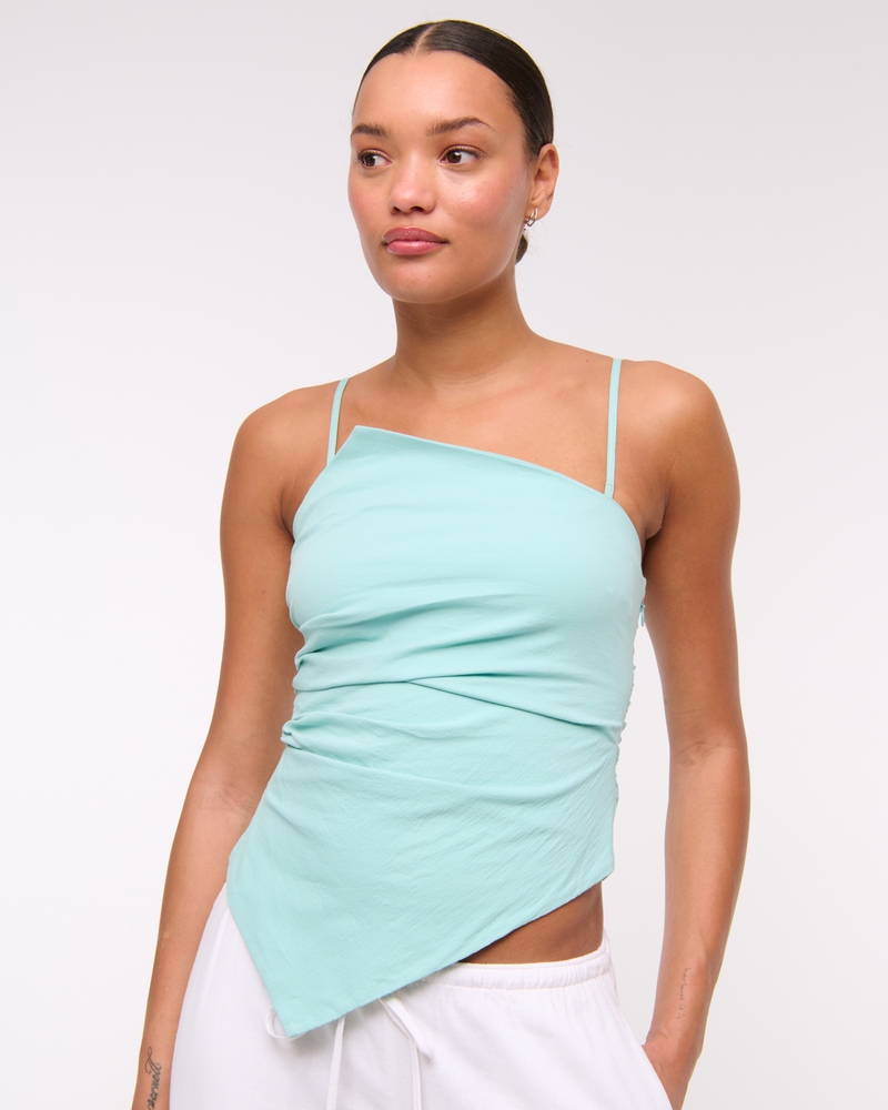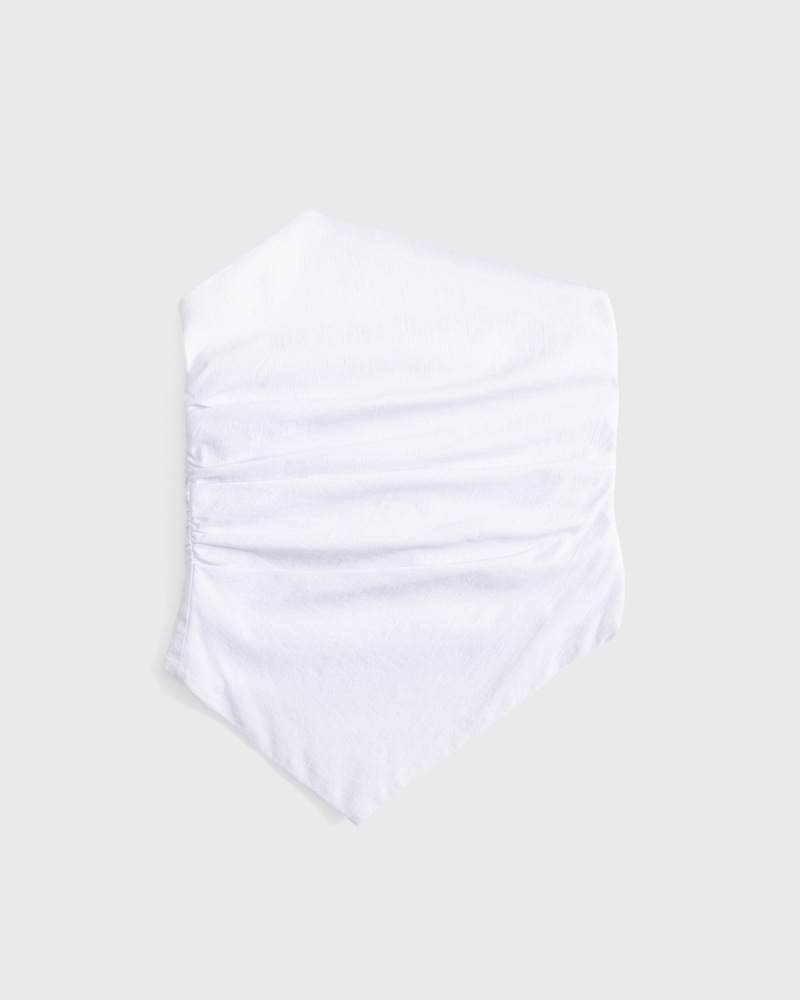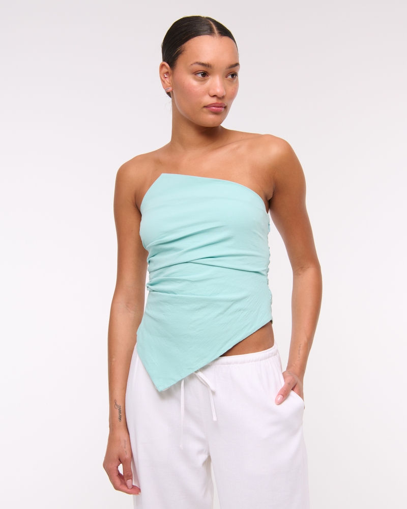 Flattering strapless top in our soft cotton-blend fabric, featuring an asymmetrical neckline, ruching details along the bodice and on-trend pointed hem. Imported.
