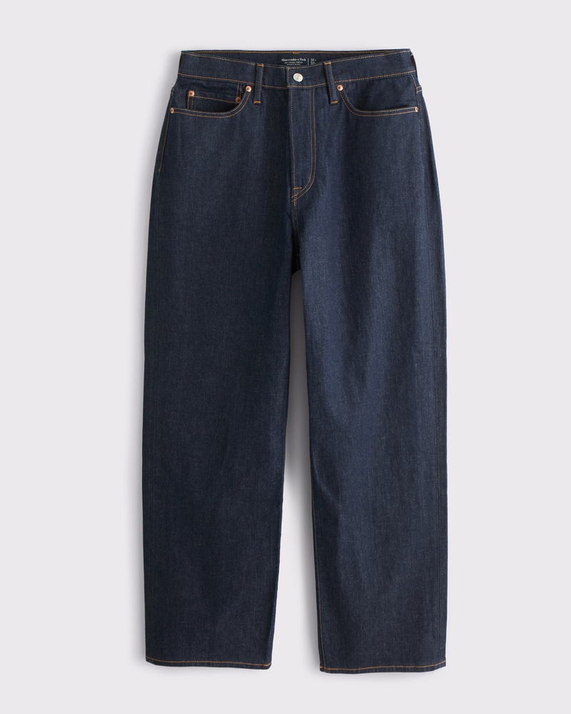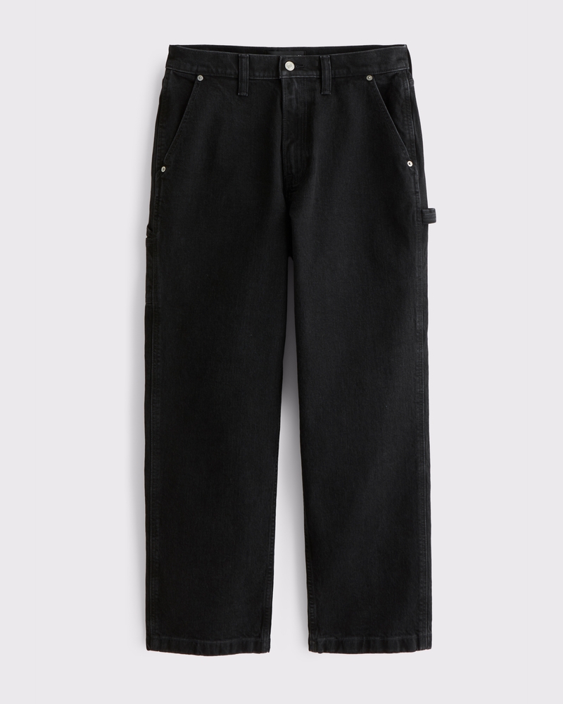Our new athletic baggy jeans, that are relaxed and baggy-fitting through the leg with slight puddle at the shoe, in our vintage stretch fabric and broken-in denim feel. Our athletic fit gives more room through the thigh and seat, featuring added stretch for comfort. Features a black wash, workwear-style carpenter details and clean hem. Features a longer inseam designed to puddle around the shoe. For a shorter visual, choose a shorter inseam. Imported.