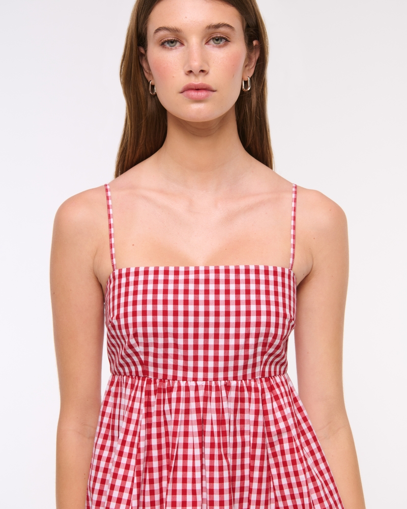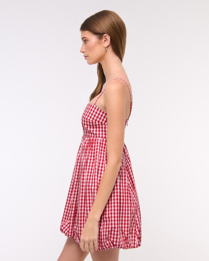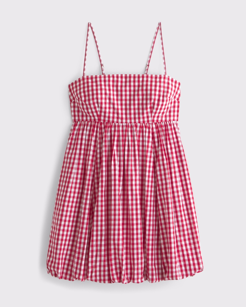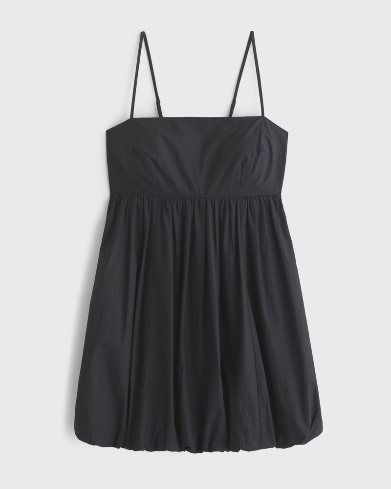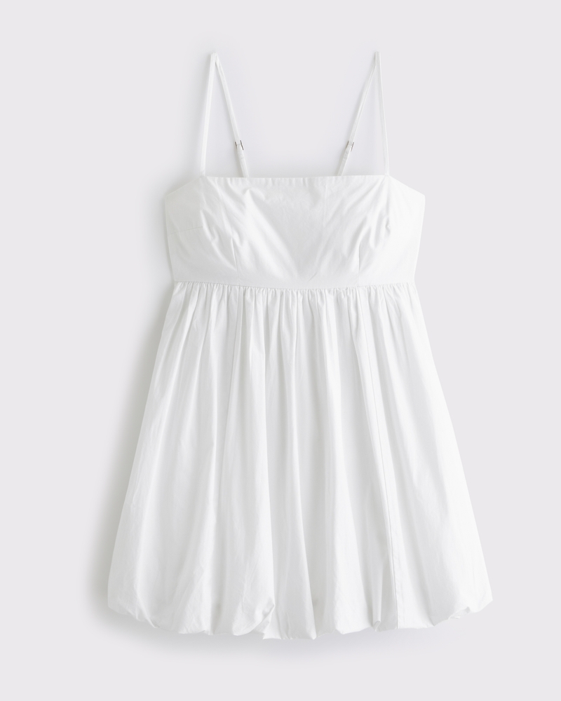 Flattering mini dress in our classic poplin fabric and babydoll silhouette, featuring a straight neckline, adjustable straps and a flowy on-trend bubble hem skirt. Imported.