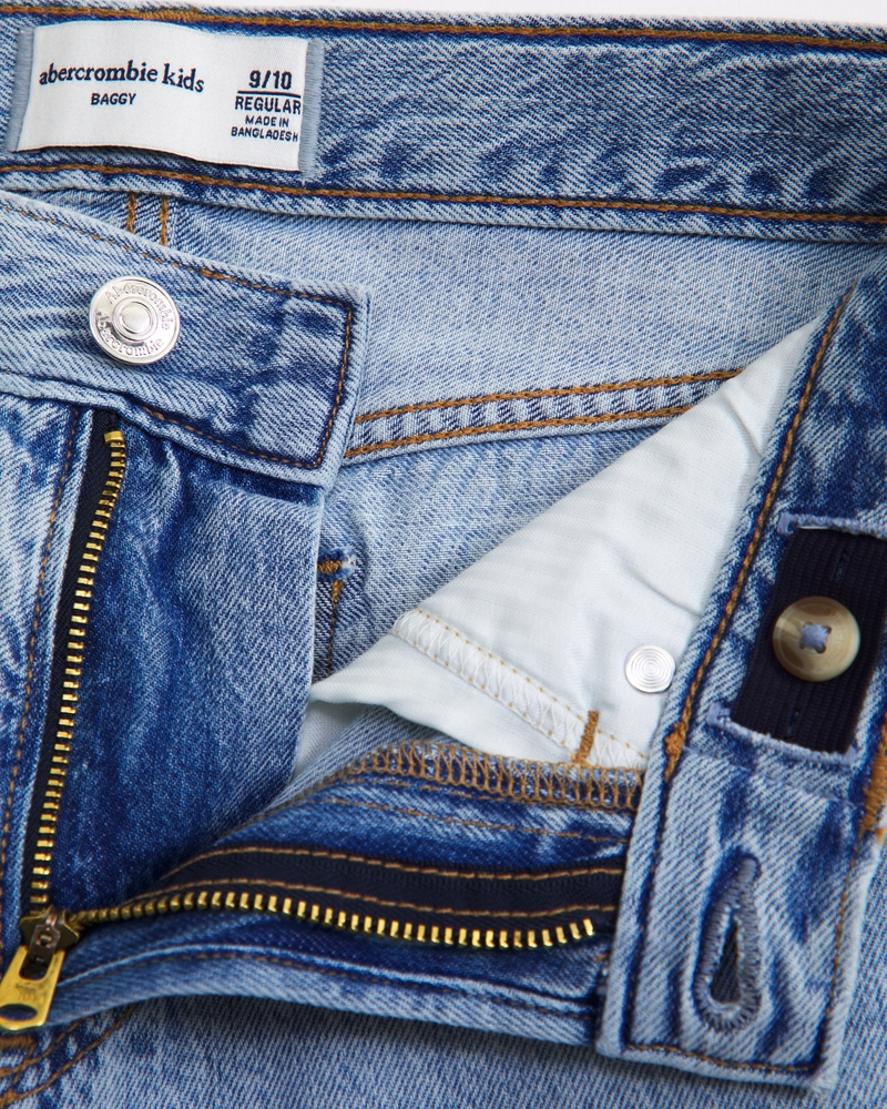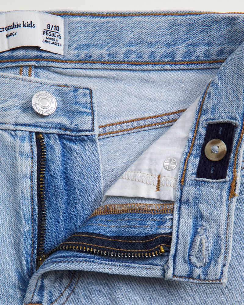 Our new easy-fitting new jeans in our comfortable lightweight denim, featuring a medium wash, on-trend cargo details and pockets, seaming details throughout and a fixed waistband with adjusters in all sizes. Sizes 5/6 and 7/8 have snap-front closures and sizes 9/10 and up have button-front closure. Imported.