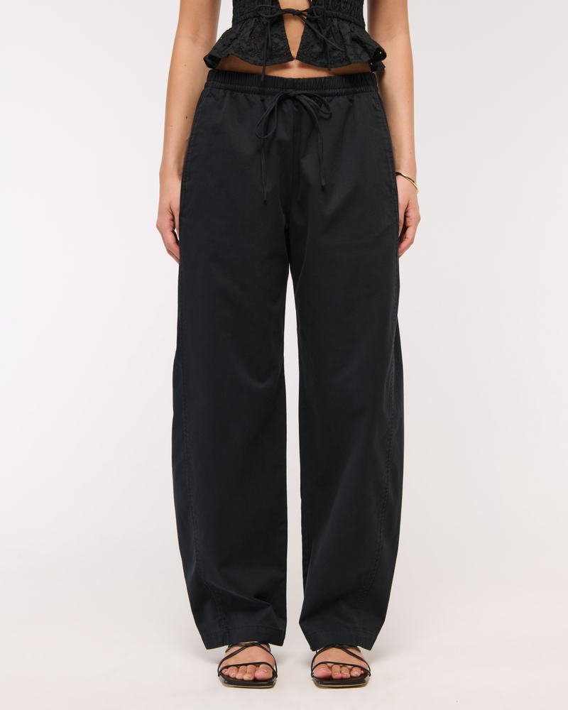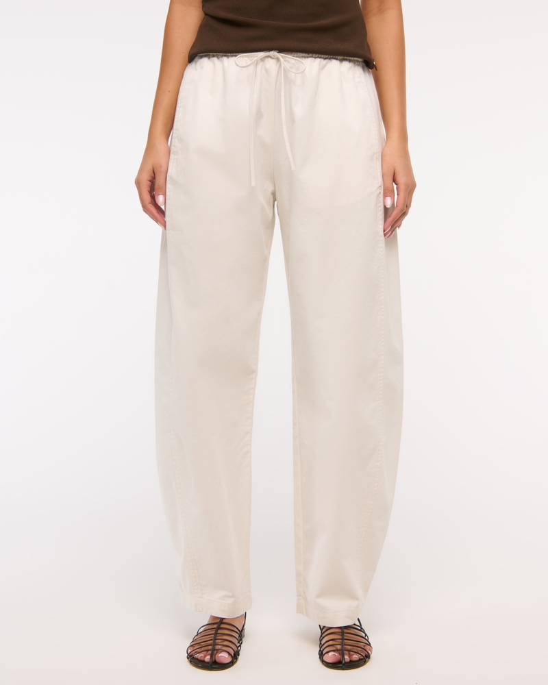 Easy-fitting pants in our cotton-twill fabric, that have a relaxed fit at the waist and hips, loose fit through the thigh and calf and tapers into a barrel-leg shape. Features functional pockets and a pull-on style elasticated waistband with a drawstring detail for an adjustable rise. Imported.