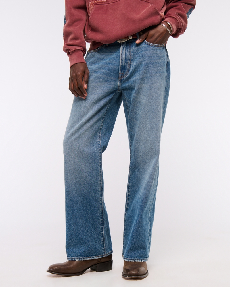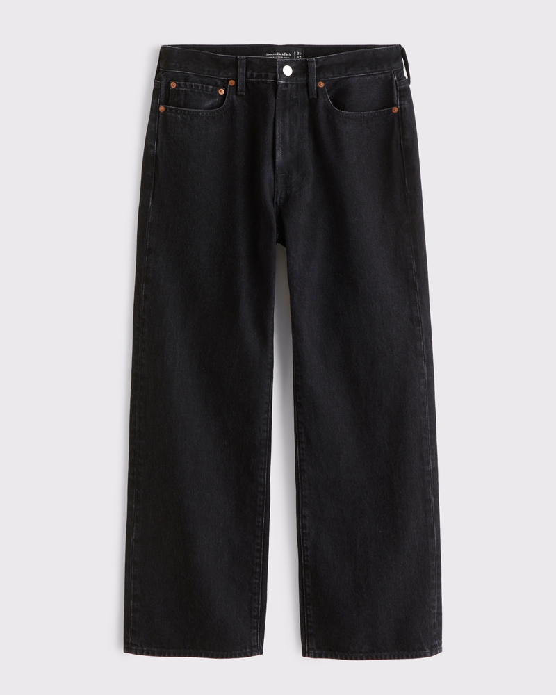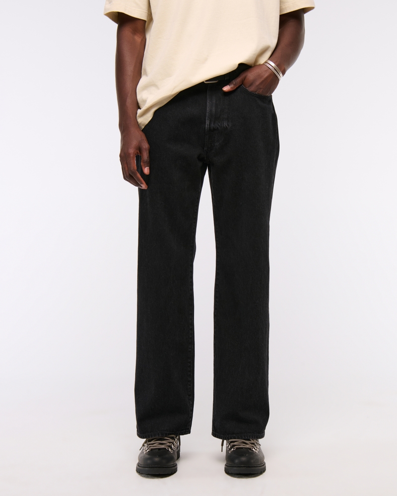 Our new bootcut fit jeans are loose fitting through the thigh with a slight bootcut leg opening, in our 100% cotton no-stretch fabric and broken-in denim feel. Features a black wash and clean hem. Imported.