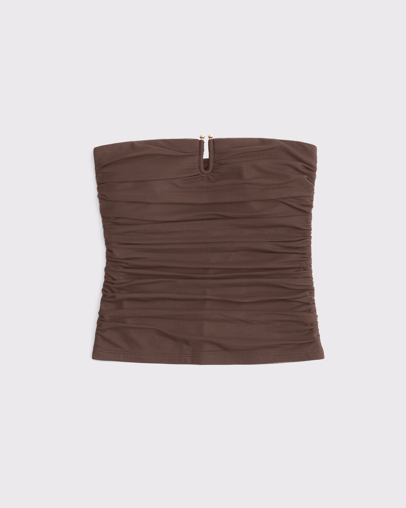 Our new collection built to make going bra-free that much smoother. Slim-fitting tube top in our soft mesh fabric, featuring on-trend hardware and draping details along the bodice. Features removable pads for added coverage. Imported.