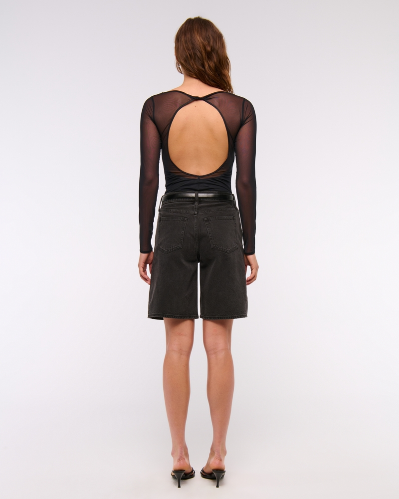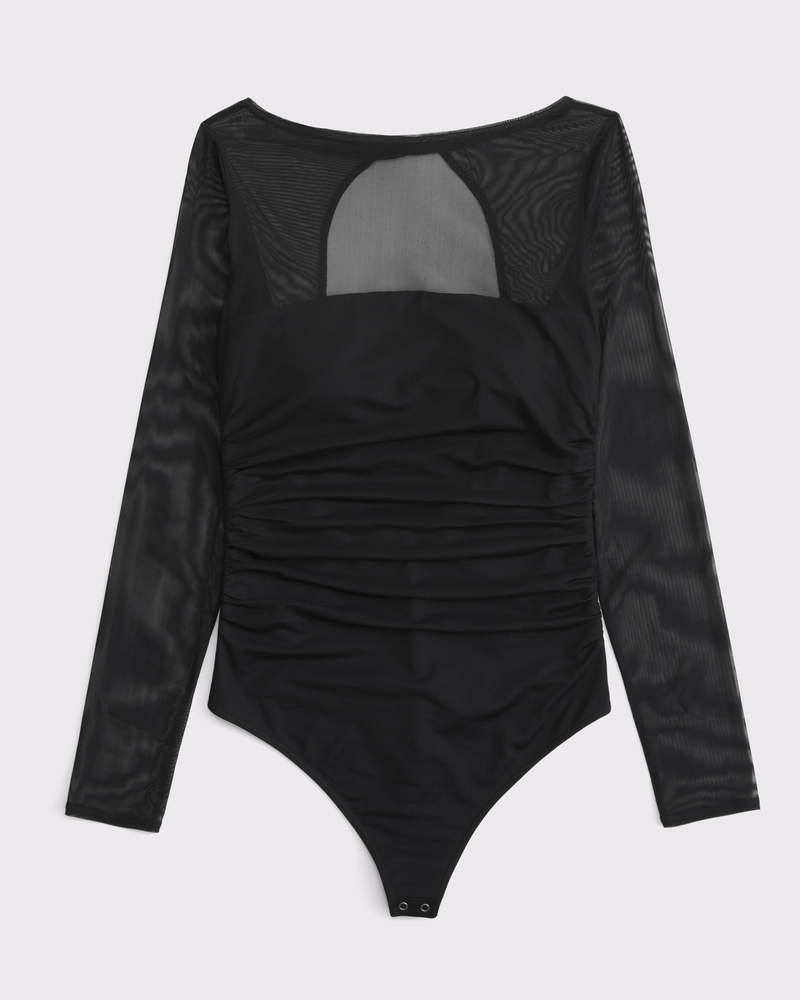 Our new collection built to make going bra-free that much smoother. Slim-fitting long-sleeve bodysuit in our soft mesh fabric, featuring a sheer mesh overlay, open-back detail and two-snap bottom closure. Imported.