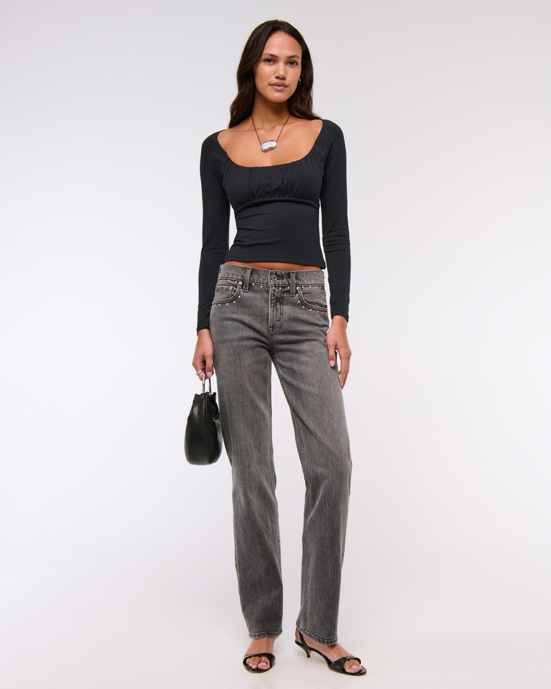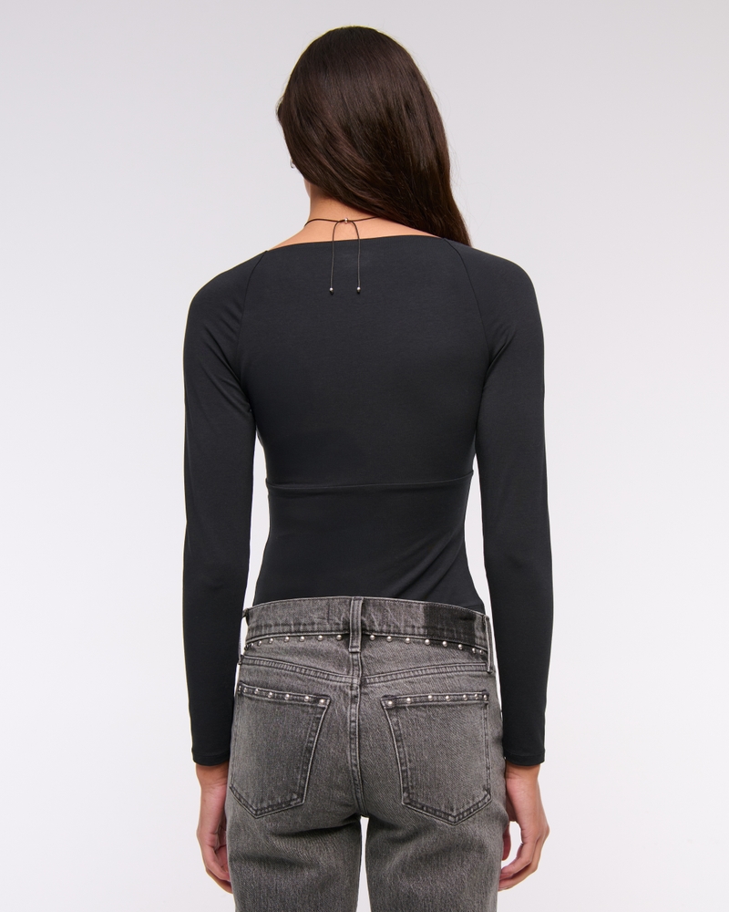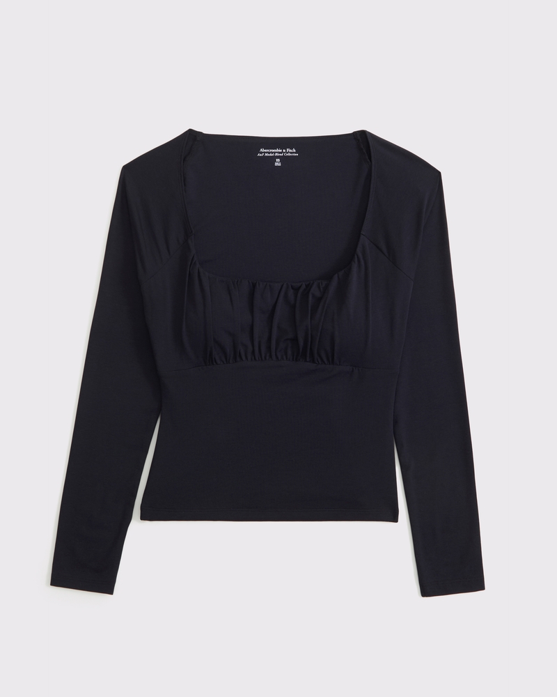 Our new collection built to make going bra-free that much smoother. Slim-fitting long-sleeve top in our soft cotton-modal fabric and babydoll silhouette, with a scoop neckline, ruching details along the bodice and seamed-in pads. Imported.