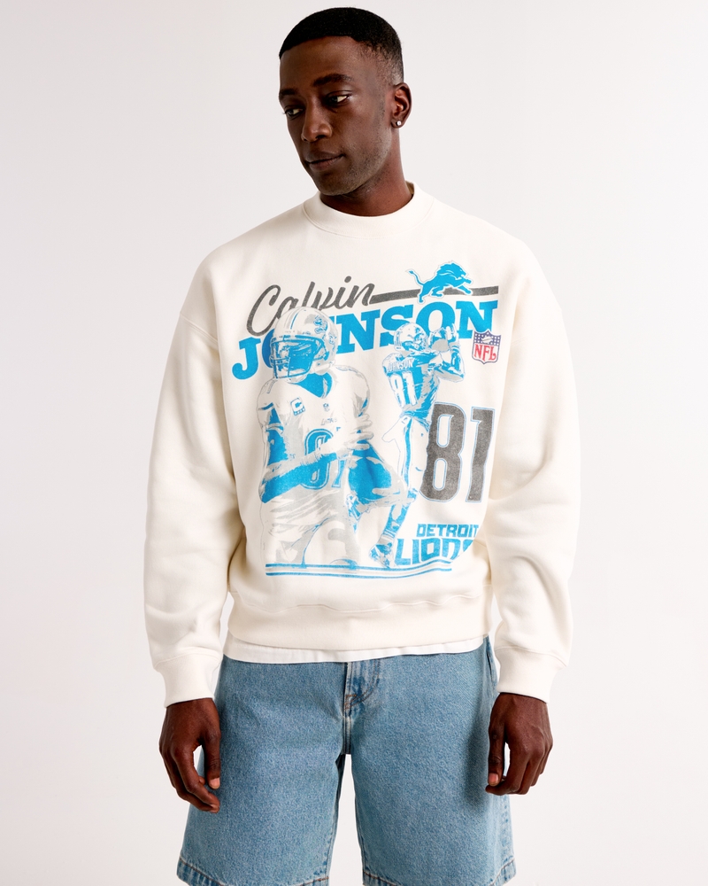 Classic sweatshirt in our softAF fleece fabric and oversized-fit silhouette, featuring Calvin Johnson-inspired graphic detail at chest, crew neckline and banded hem and cuffs. Imported.