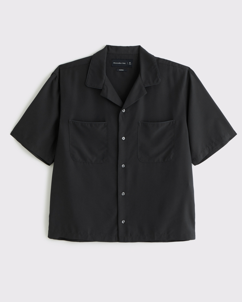 Comfortable short-sleeve button-up shirt in our soft cupro fabric and cropped length, featuring a relaxed-fit silhouette, resort-style camp collar, chest pockets and straight hem. Imported.