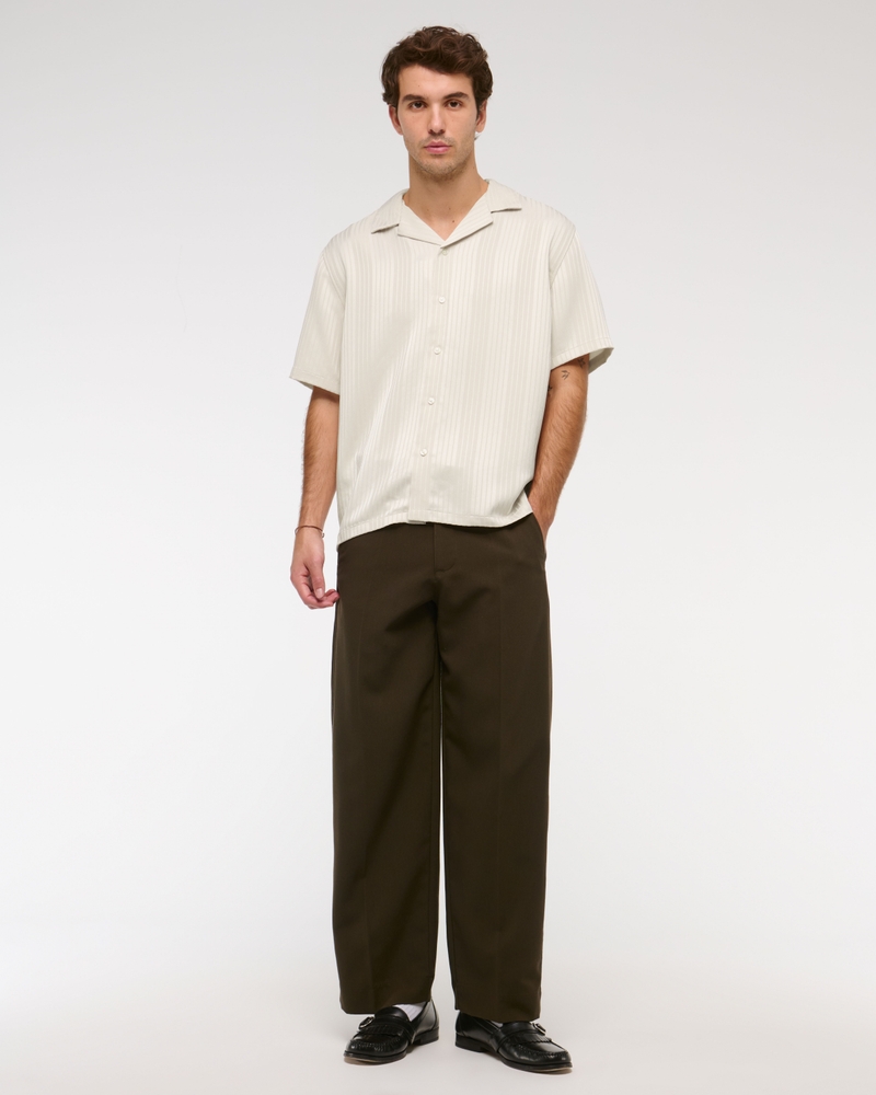 Comfortable short-sleeve button-up shirt in our soft textured fabric, featuring a relaxed-fit silhouette, resort-style camp collar, all-over texture details and straight hem. Imported.