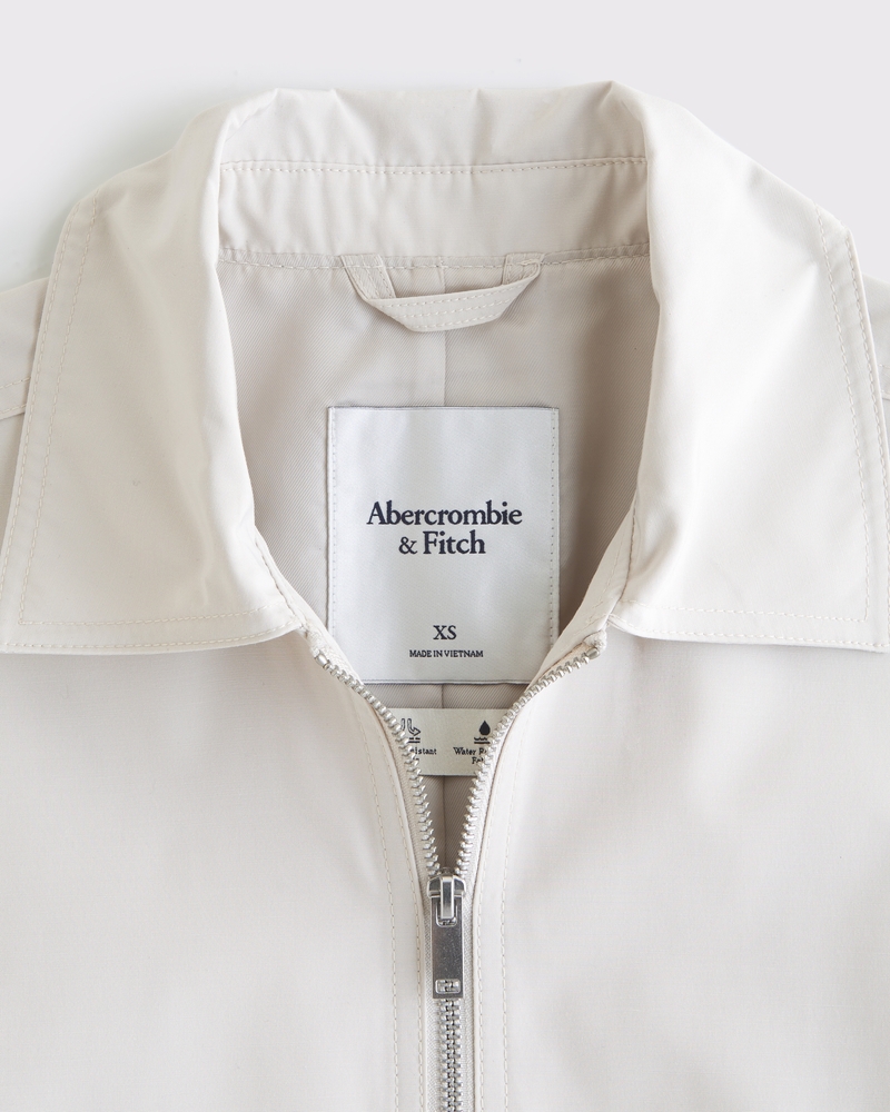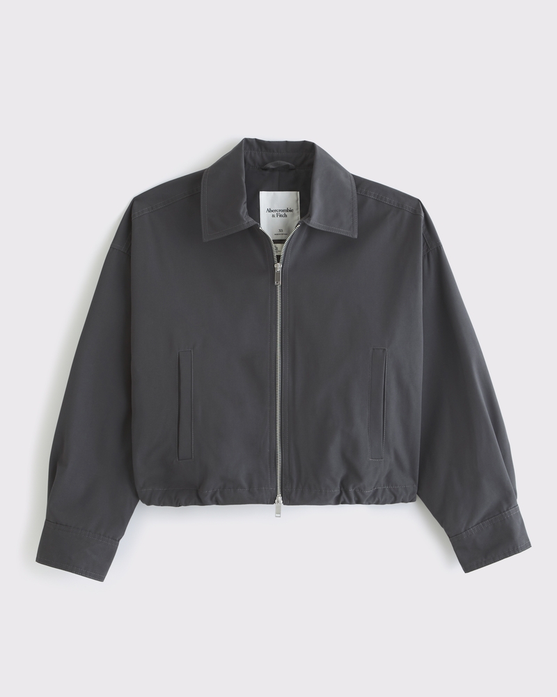 Our new, easy throw-on jacket in our wind- and water-resistant fabric and flattering short length, featuring a cinching detail at the hem, double-zipper closure, classic fold-down collar and side entry pockets. Imported.