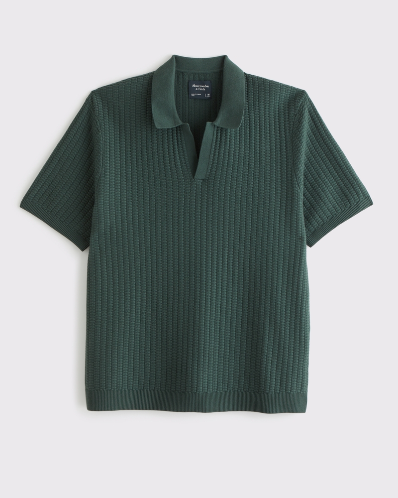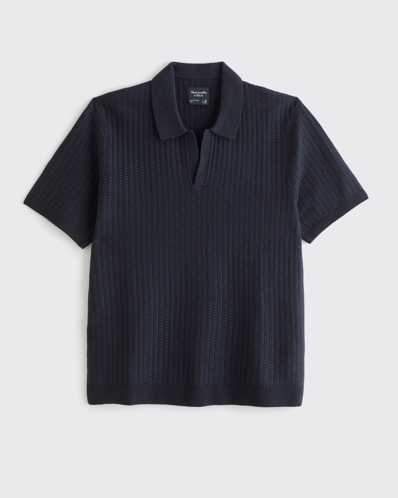 Short-sleeve sweater polo in our soft sweater-knit fabric and relaxed-fit silhouette, featuring classic textural stitching details throughout, no-button Johnny collar and banded hem and cuffs. Imported.