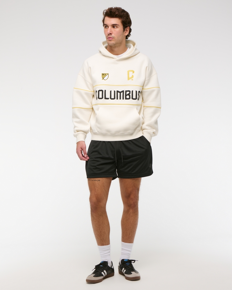 Comfortable popover hoodie in our softAF fleece fabric and oversized-fit silhouette, featuring Columbus Crew-inspired graphic details at chest, front pouch pocket and banded hem and cuffs. Imported.