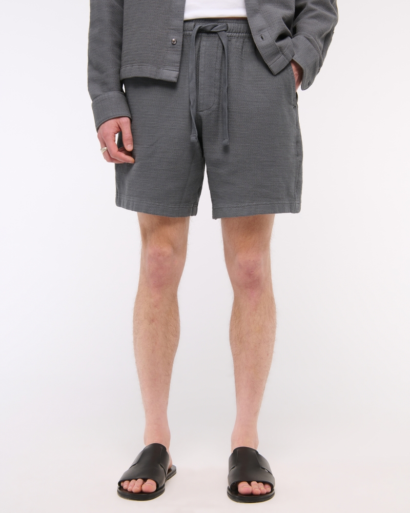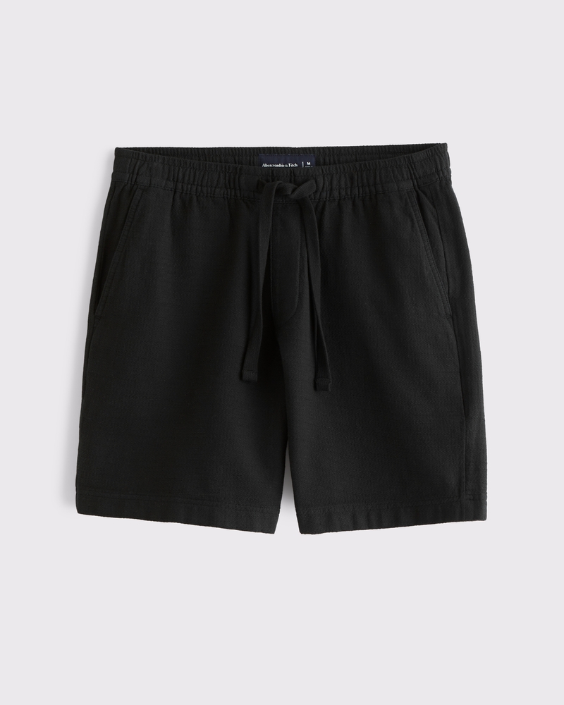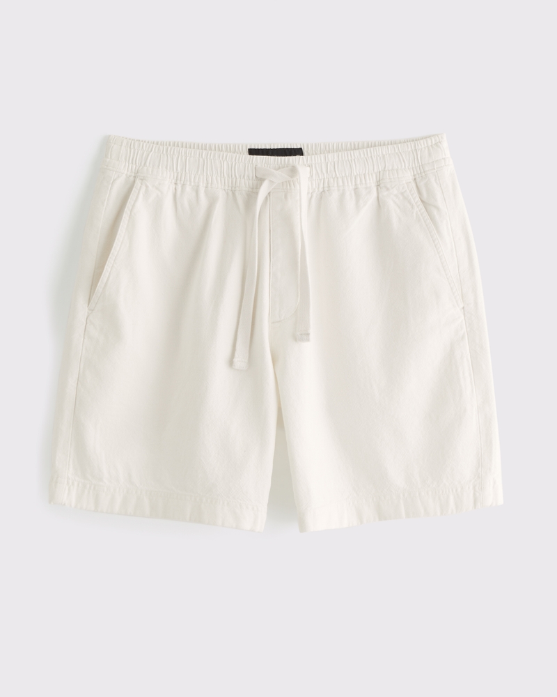 Comfortable 8 inch (20 cm) pull-on style shorts in a cotton slub fabric and relaxed-fit silhouette, featuring an elasticated drawstring waist and pockets throughout. Imported.