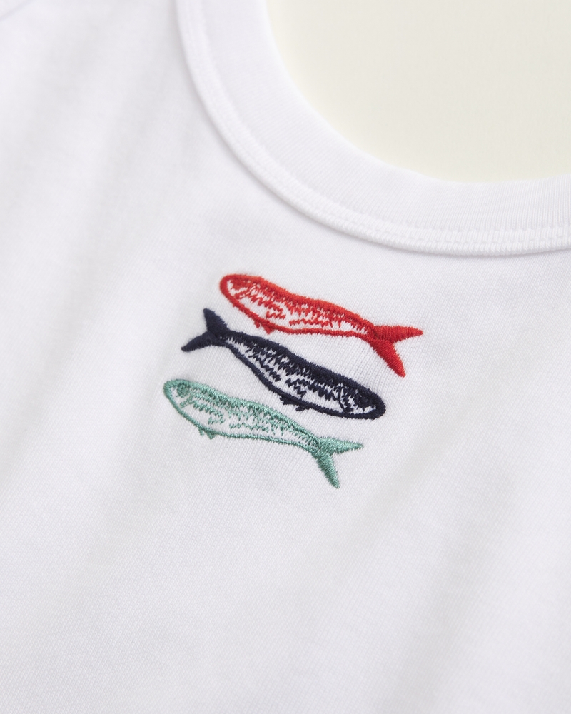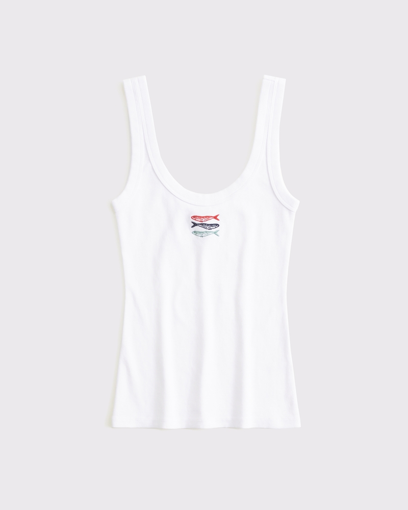 Slim-fitting tank in our vintage rib fabric, that hits above the hips, featuring crab-inspired graphic detail at chest, all-over ribbed detail and scoop neckline. Imported.