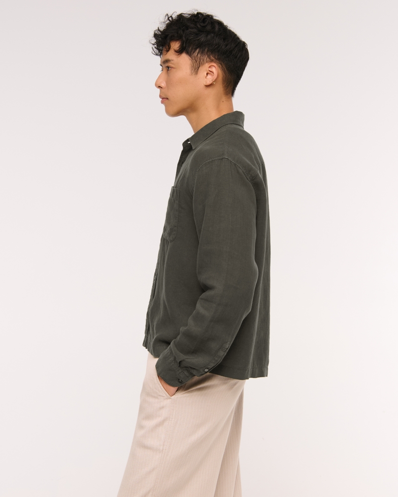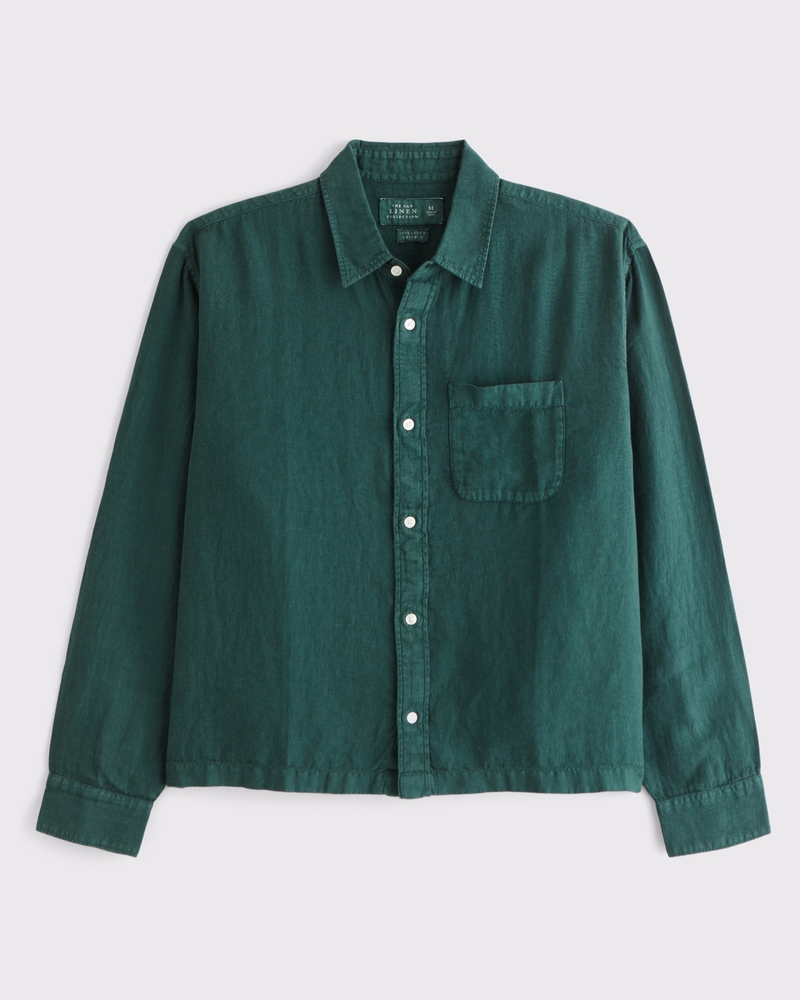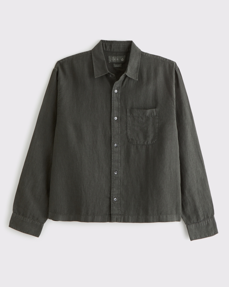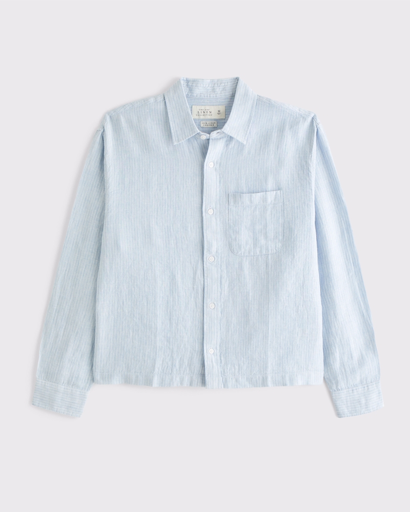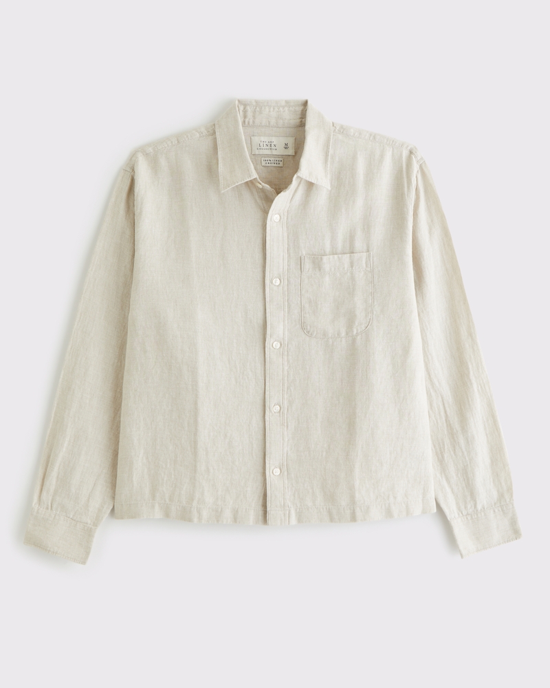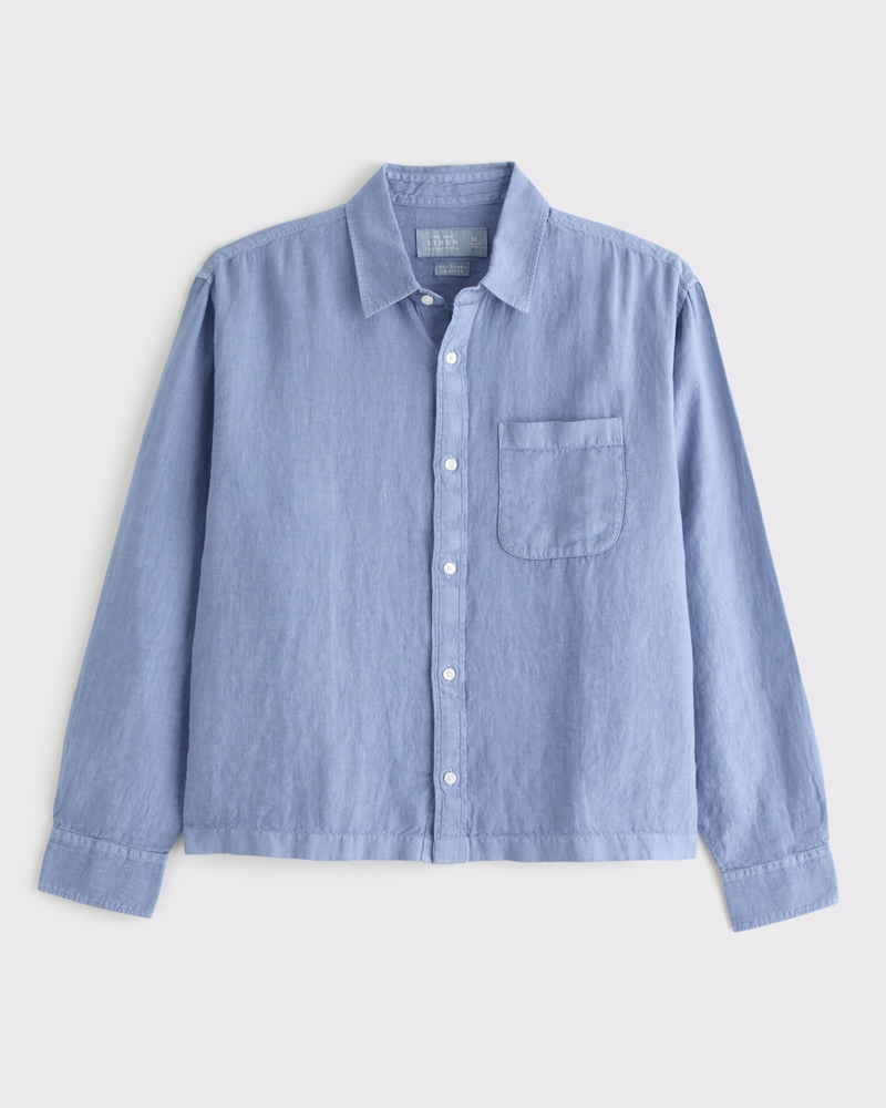 Comfortable long-sleeve button-up shirt in our 100% linen fabric and new cropped length. Features a classic collar, left chest pocket and straight hem. Imported.