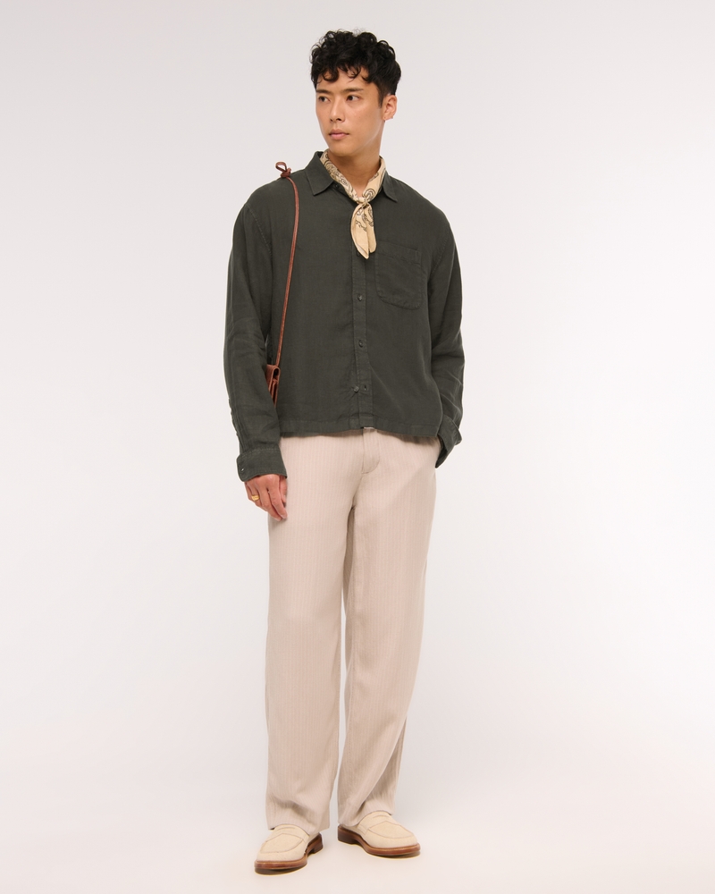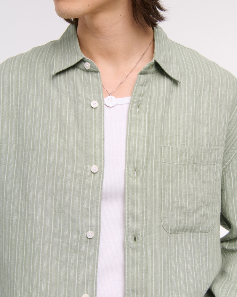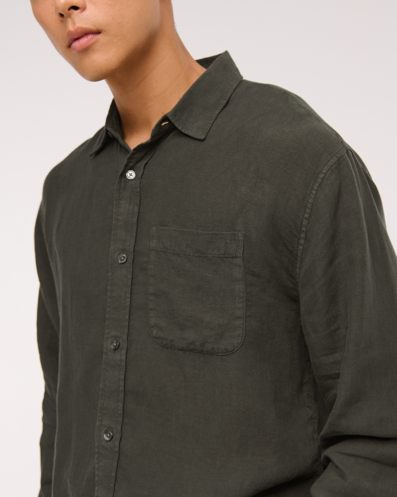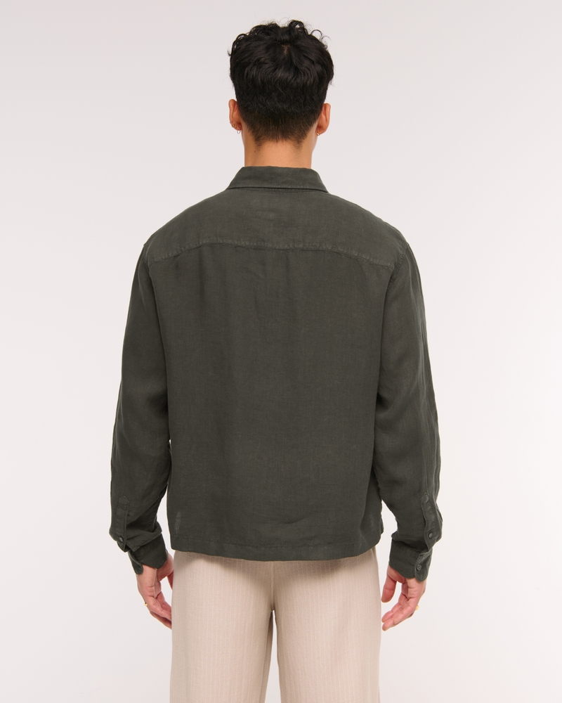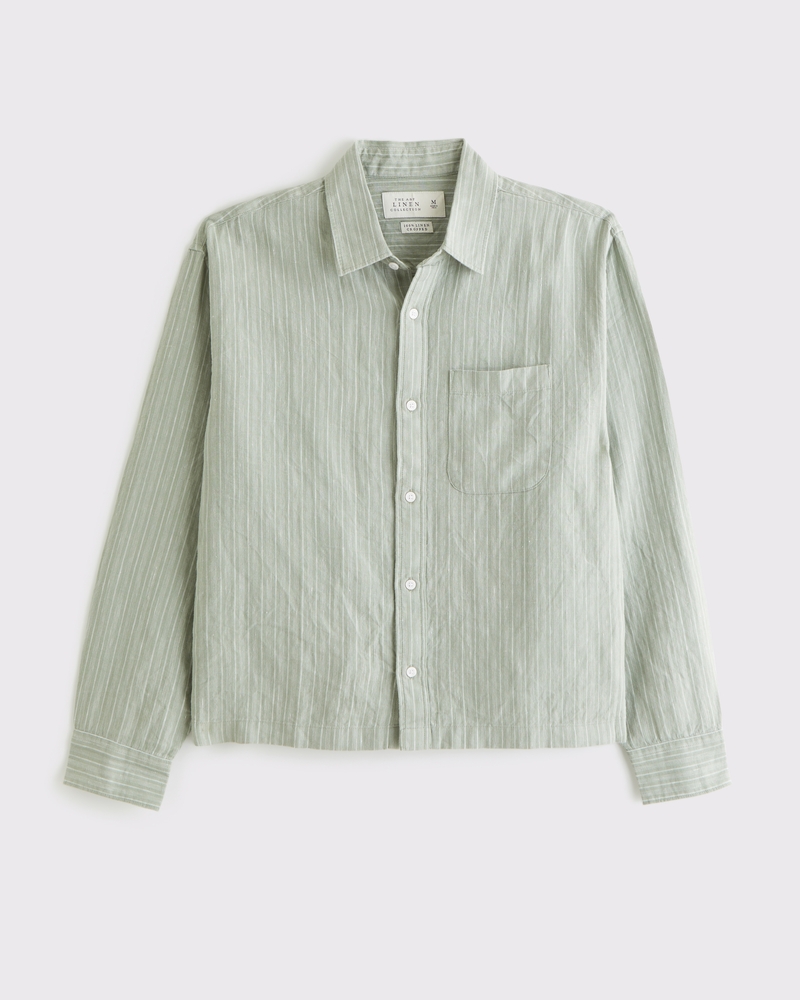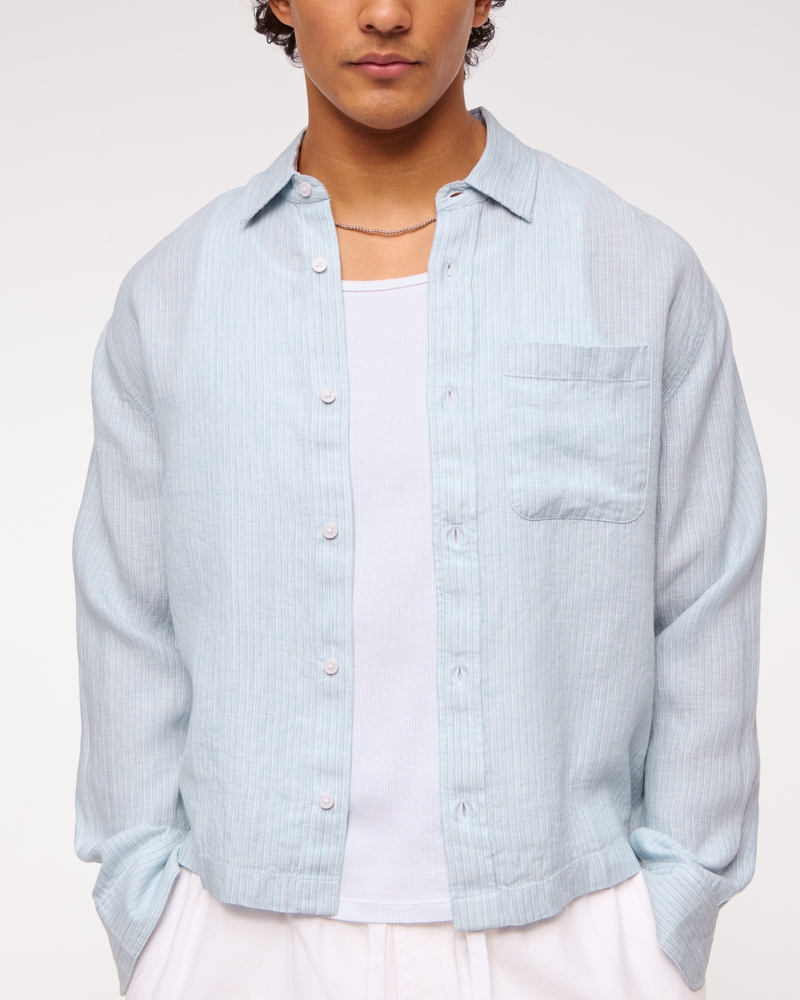 Comfortable long-sleeve button-up shirt in our 100% linen fabric and new cropped length. Features a classic collar, left chest pocket and straight hem. Imported.