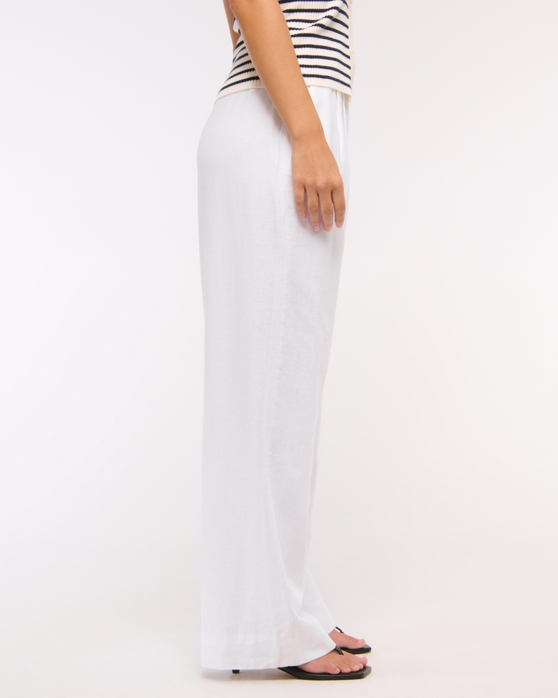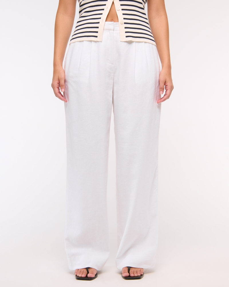 Our signature A&F Sloane Tailored Pant with a low rise, in our breezy linen-blend fabric, that’s perfect for dressing up or down. Featuring figure-flattering pleating details, a functional fly and pockets and a partially elasticated waistband for ultimate adjustability. The viral fit that eliminates waist gap: Curve Love features additional room through the hip and thigh for curve-hugging comfort. Imported.