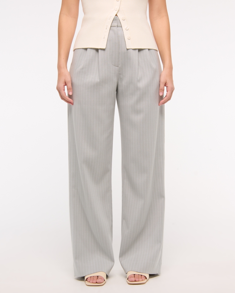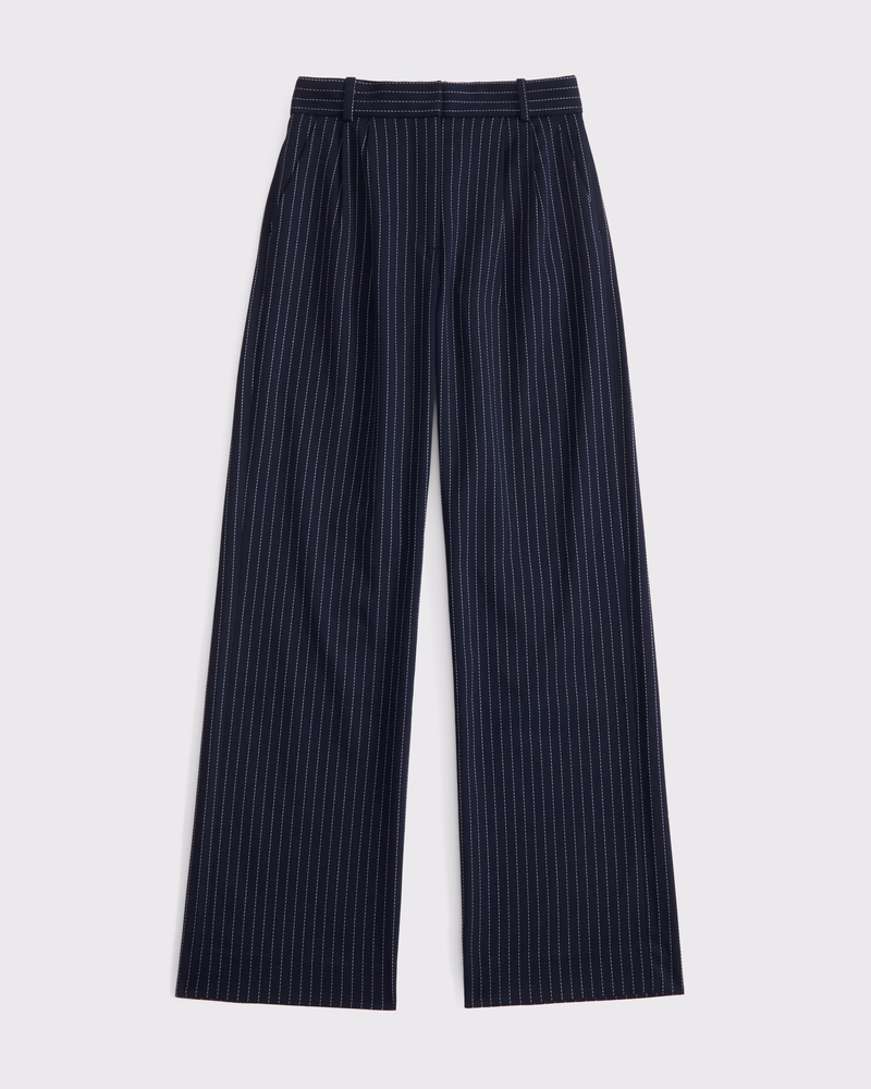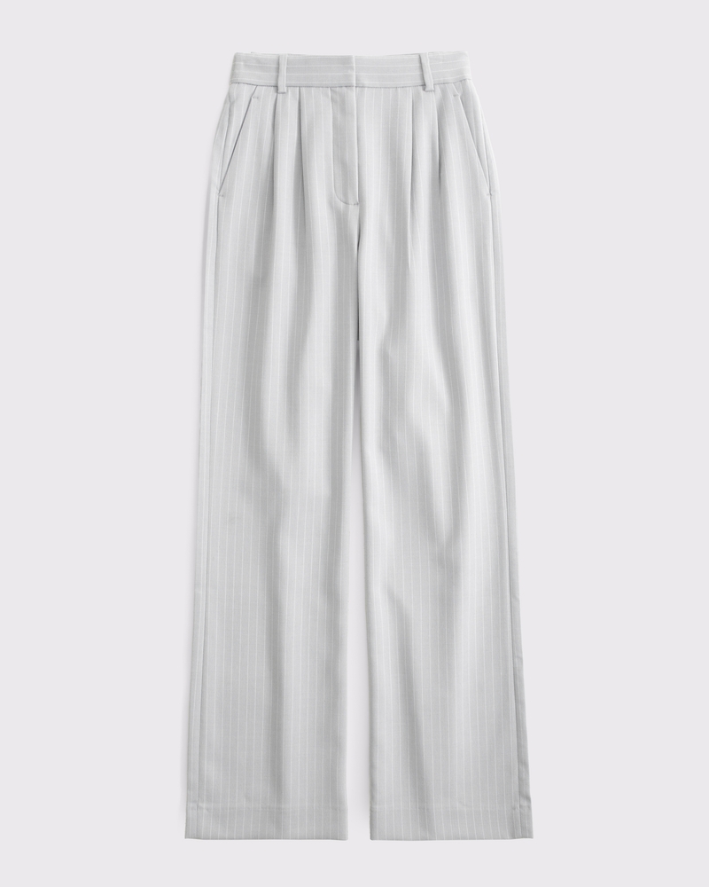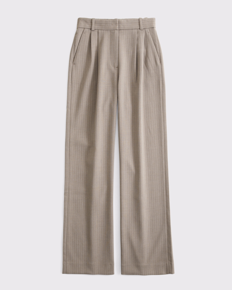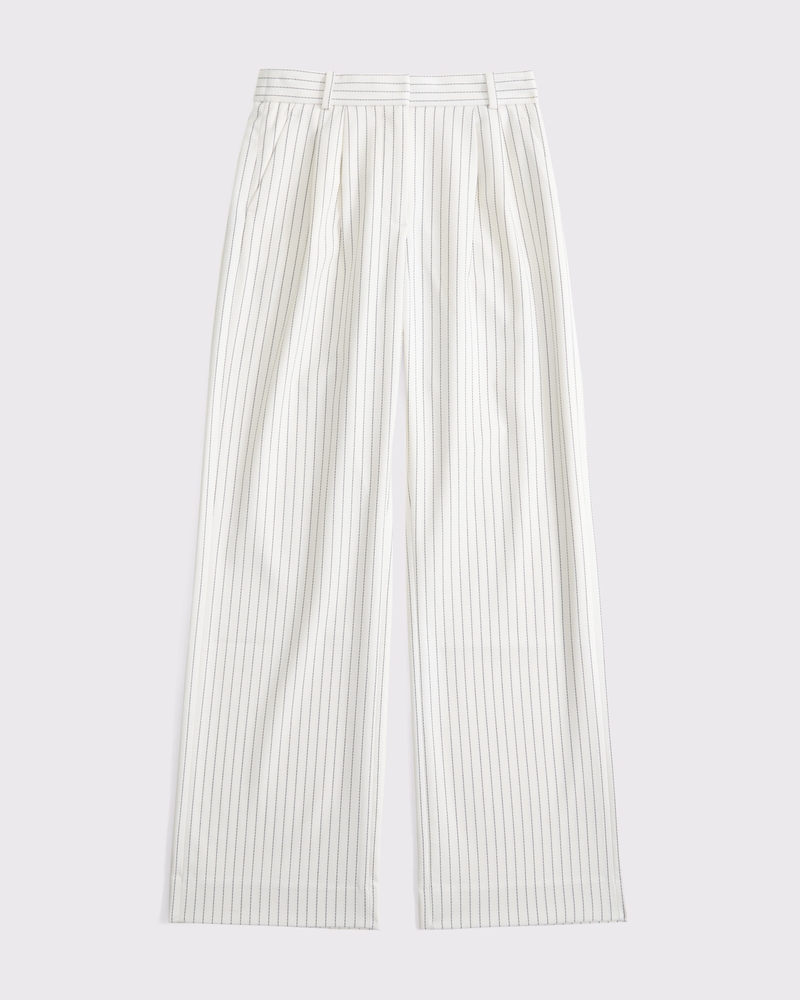 Our signature A&F Sloane tailored pant in our everyday menswear fabric. The Sloane Tailored Pant is an ultra high rise tailored wide leg pant with figure-flattering pleat details, a functional fly and a partially elasticated waistband for ultimate adjustability. This fit is relaxed through the hips, and eases into a wide, full-length leg shape. The viral fit that eliminates waist gap: Curve Love features additional room through the hip and thigh for curve-hugging comfort. Imported.
