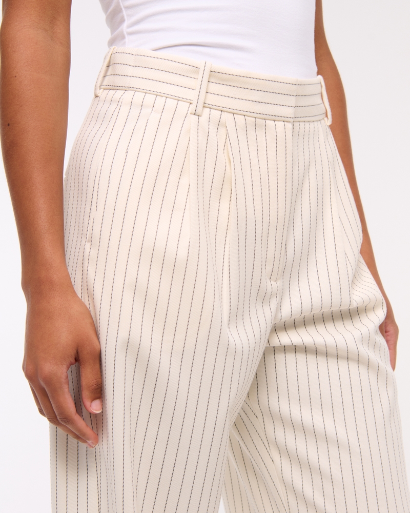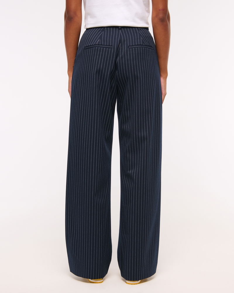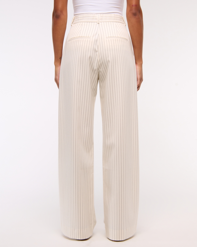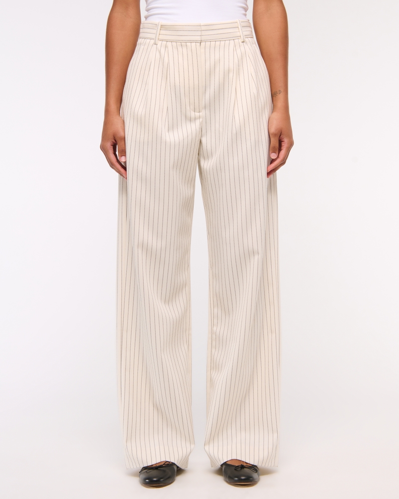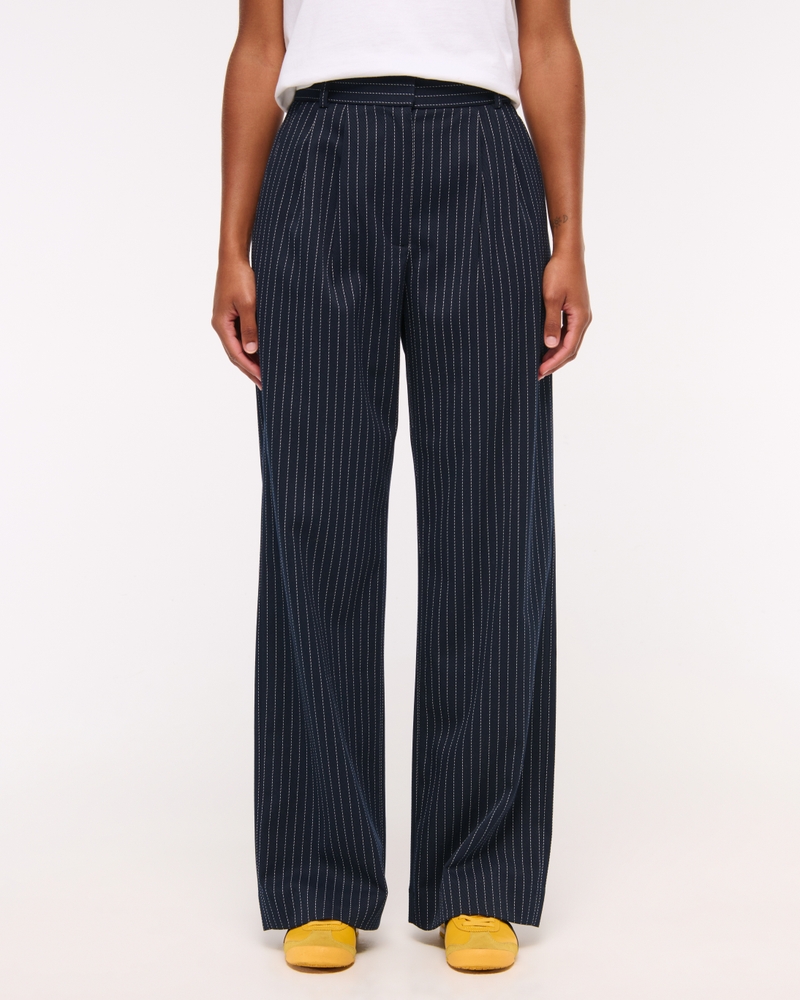 Our signature A&F Sloane tailored pant in our everyday menswear fabric. The Sloane Tailored Pant is an ultra high rise tailored wide leg pant with figure-flattering pleat details, a functional fly and a partially elasticated waistband for ultimate adjustability. This fit is relaxed through the hips, and eases into a wide, full-length leg shape. The viral fit that eliminates waist gap: Curve Love features additional room through the hip and thigh for curve-hugging comfort. Imported.