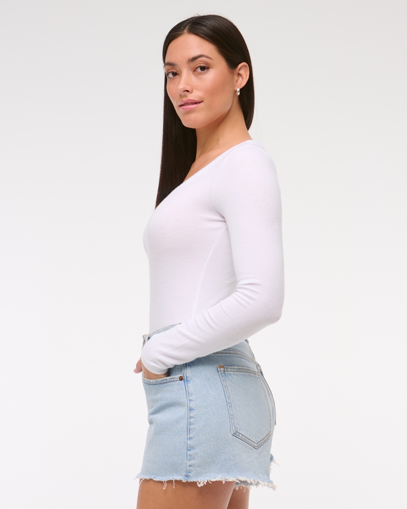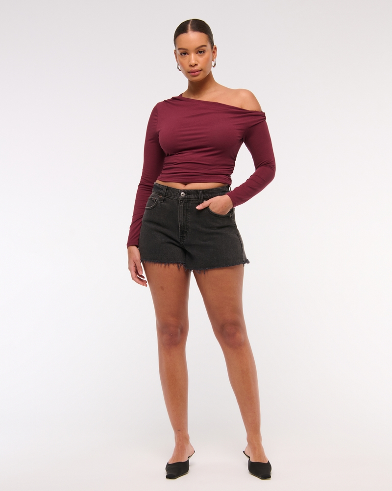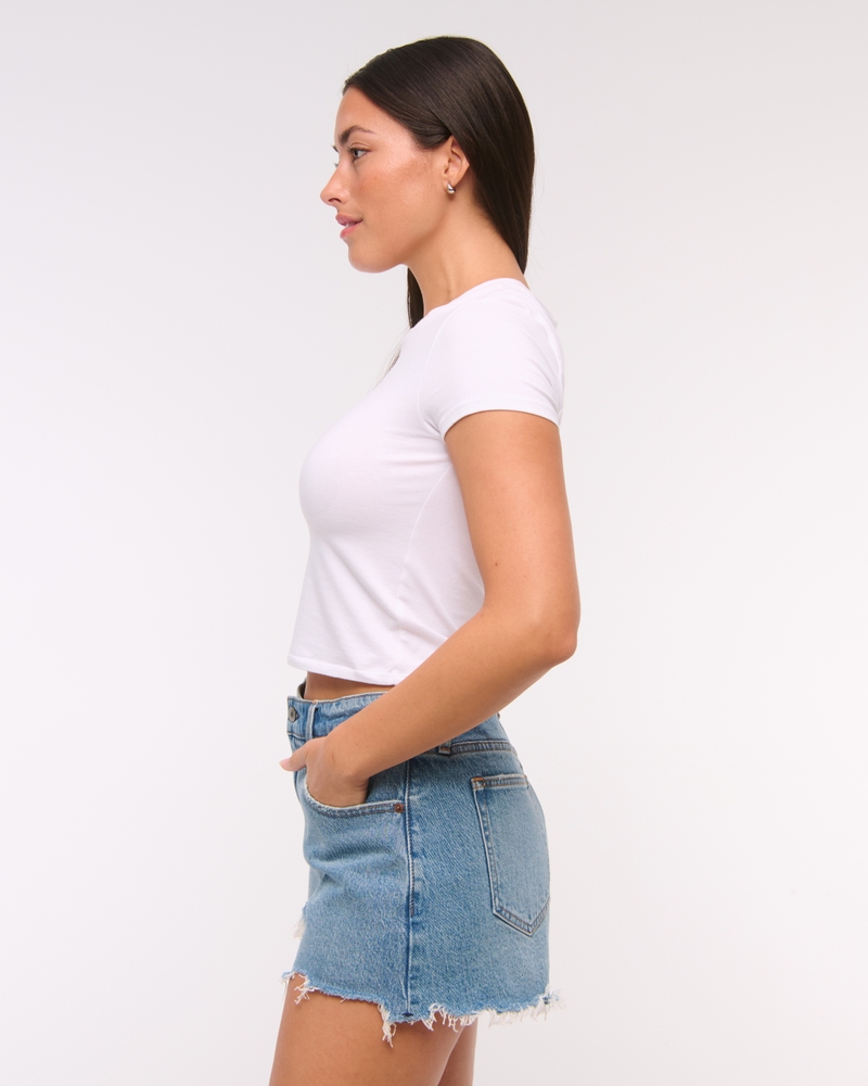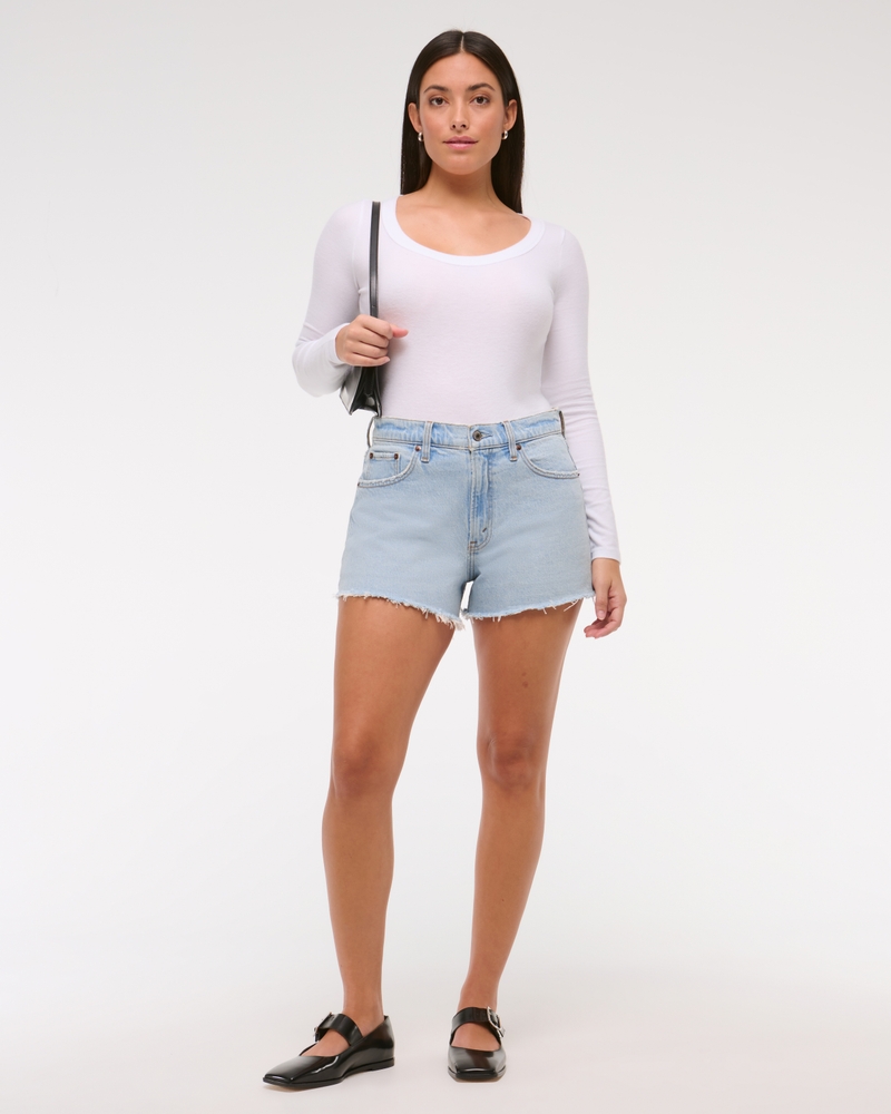 High rise 90’s-style denim with a looser fit through the leg and more room through the hip and thigh, and a 3.25 inch (8.25 cm) inseam. The viral fit that eliminates waist gap: Curve Love features additional room through the hip and thigh for curve-hugging comfort. Vintage stretch denim in a medium wash, with zipper fly and frayed hem. Imported.