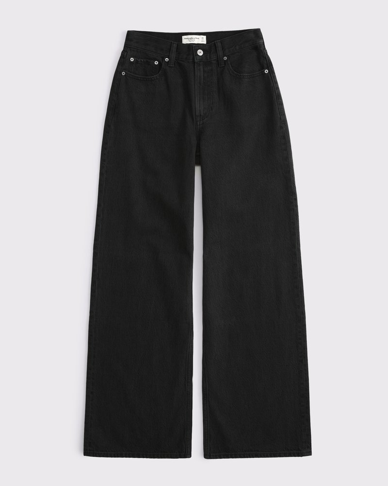 Our Curve Love high rise wide leg jeans in a black wash with a clean hem. This fit features a 10.5ā high rise, is relaxed at the waist and hips, and eases into a wide, full-length leg shape. The viral fit that eliminates waist gap: Curve Love features additional room through the hip and thigh for curve-hugging comfort. This jean is made from our super light drapey denim fabric, which features a super soft lightweight rigid denim. Imported.