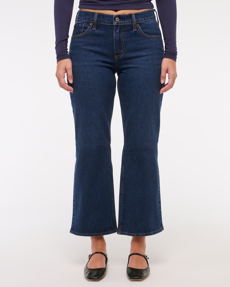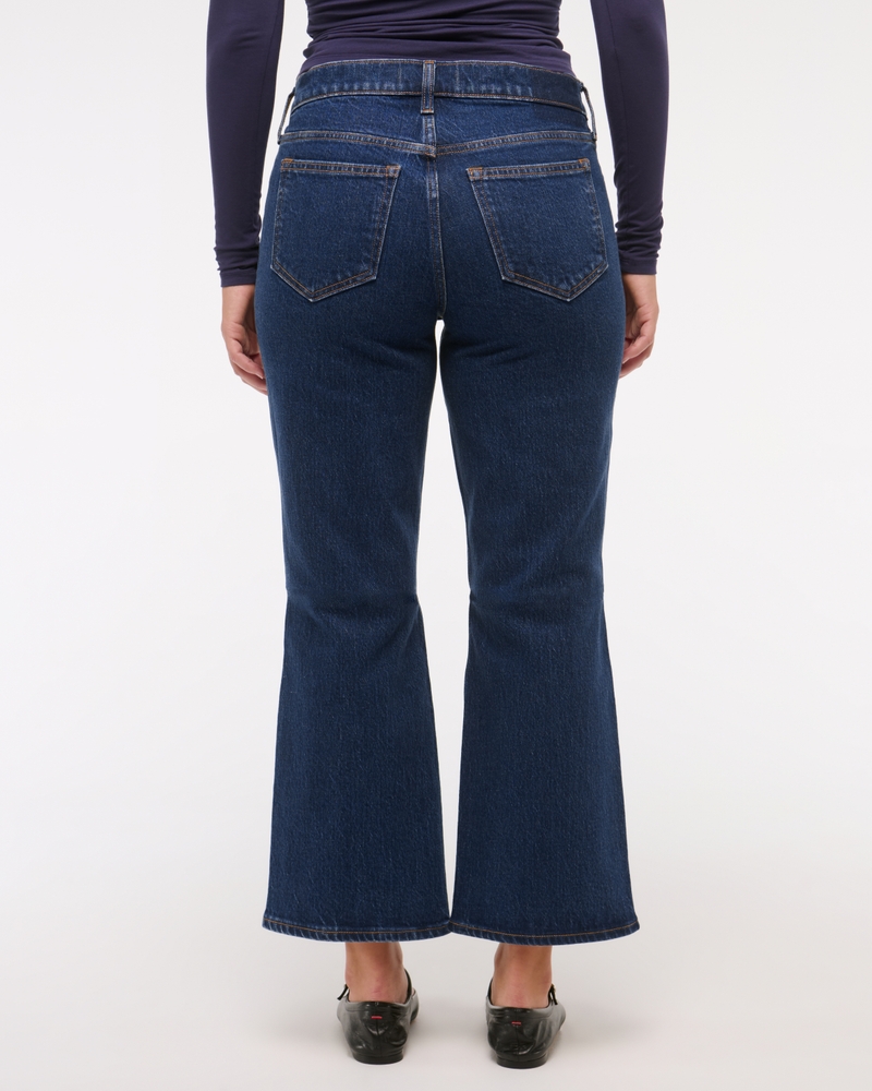 Our new Curve Love low rise cropped boot jeans in a dark marble wash with a clean hem. This fit features a low rise, is fitted at the waist, hips, and thighs, and is relaxed below the knee for a boot-leg shape. The viral fit that eliminates waist gap: Curve Love features additional room through the hip and thigh for curve-hugging comfort. This jean is made from our vintage stretch fabric which features both an authentic vintage look and contains slight built-in stretch for additional comfort.