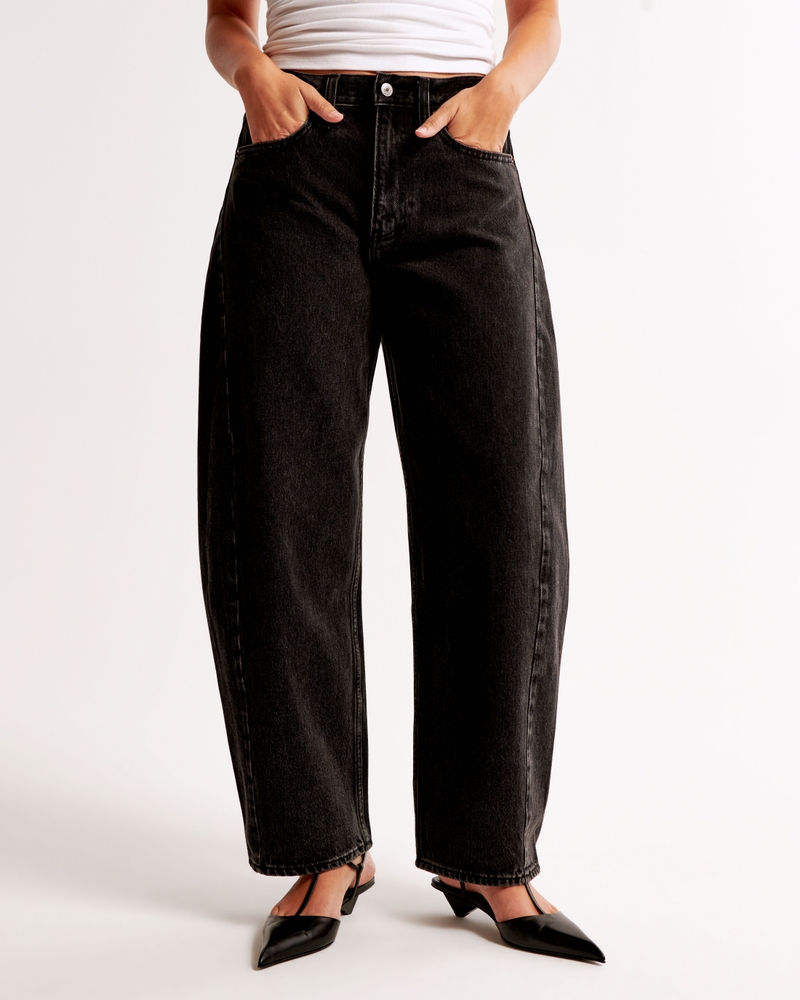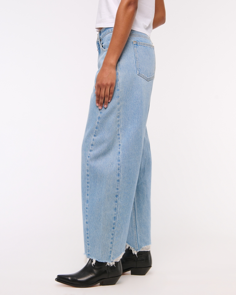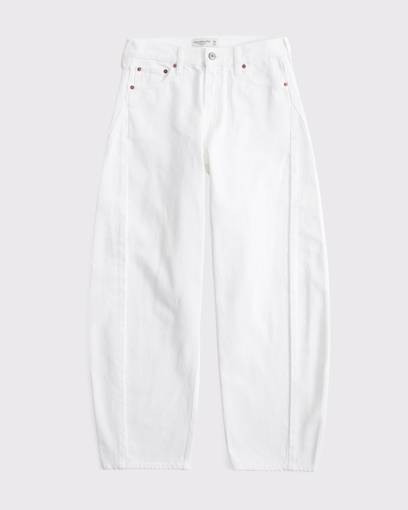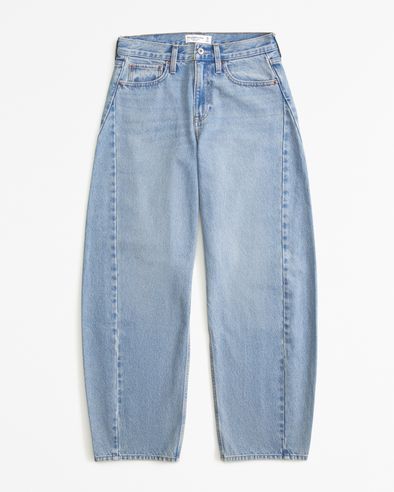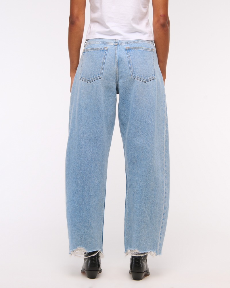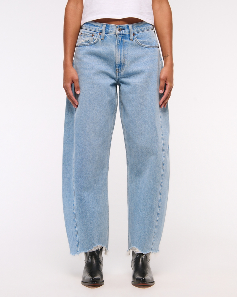 Our new Curve Love barrel jeans in a light wash with a clean hem. This fit features a 9.5” mid rise, is relaxed at the waist and hips and eases into a full-length barrel leg shape that tapers at the top of the shoe. The viral fit that eliminates waist gap: Curve Love features additional room through the hip and thigh for curve-hugging comfort. This jean is made from our heavyweight rigid denim, a super soft authentic cotton fabric with no stretch. Imported.