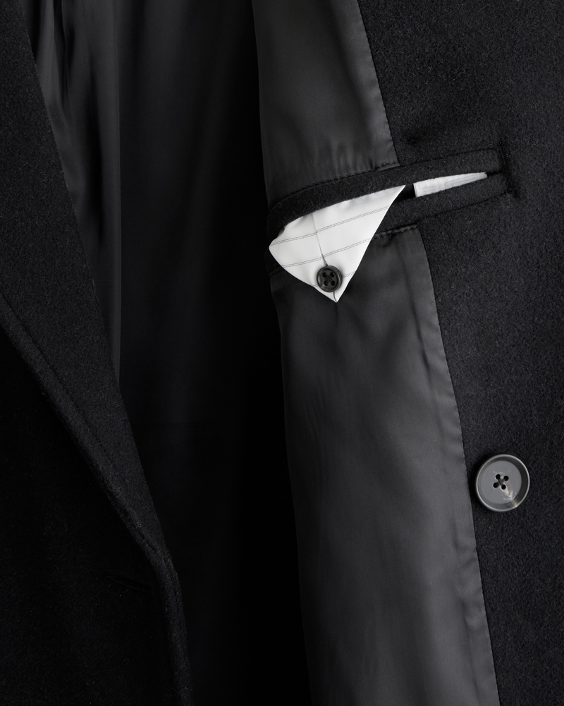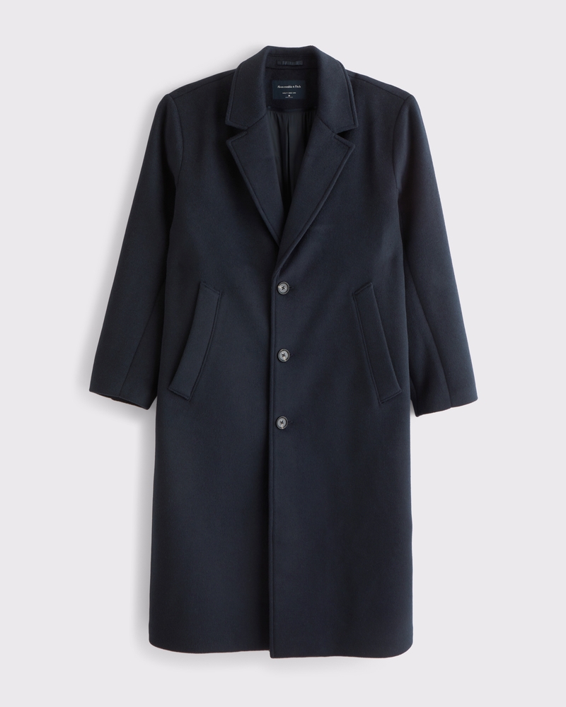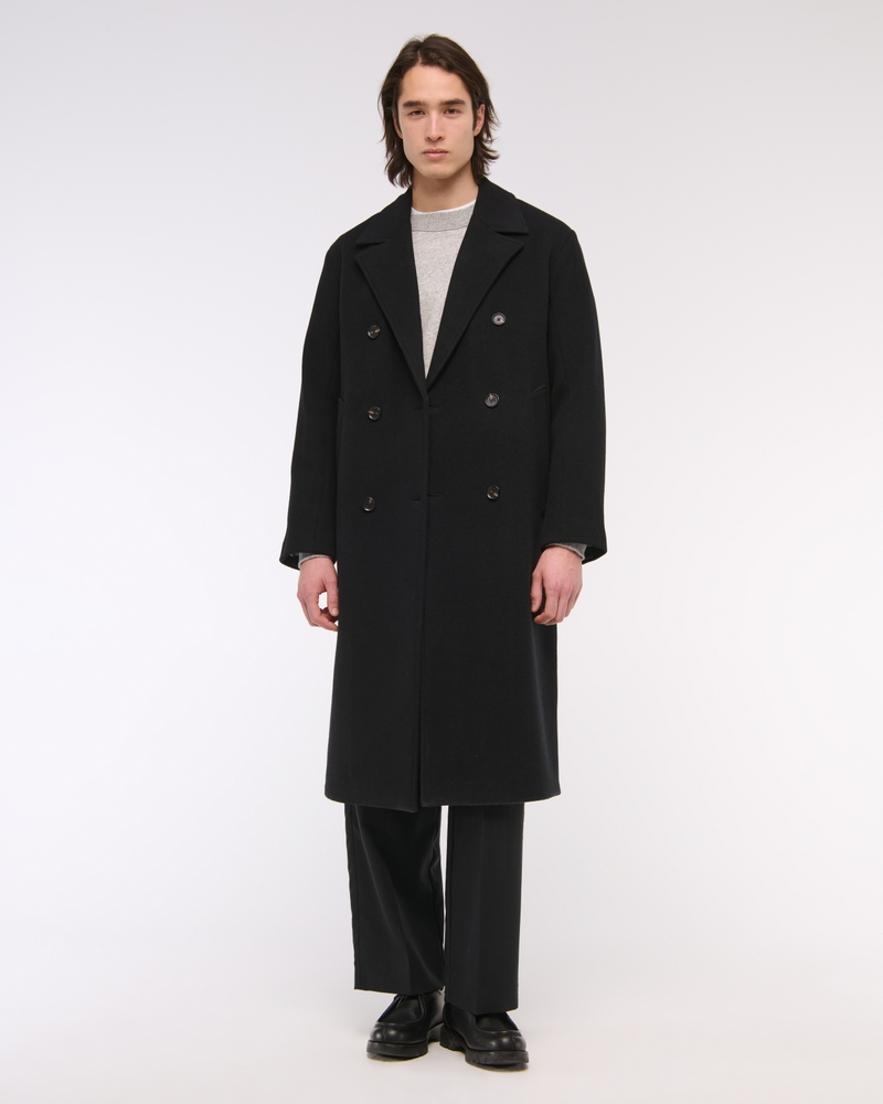 Our new double-breasted coat in our soft wool-blend fabric and longer length, featuring a relaxed-fit silhouette, classic lapel detail, tonal trims and lining, back vent detail, front button closure, side pockets and interior chest pocket. Imported.