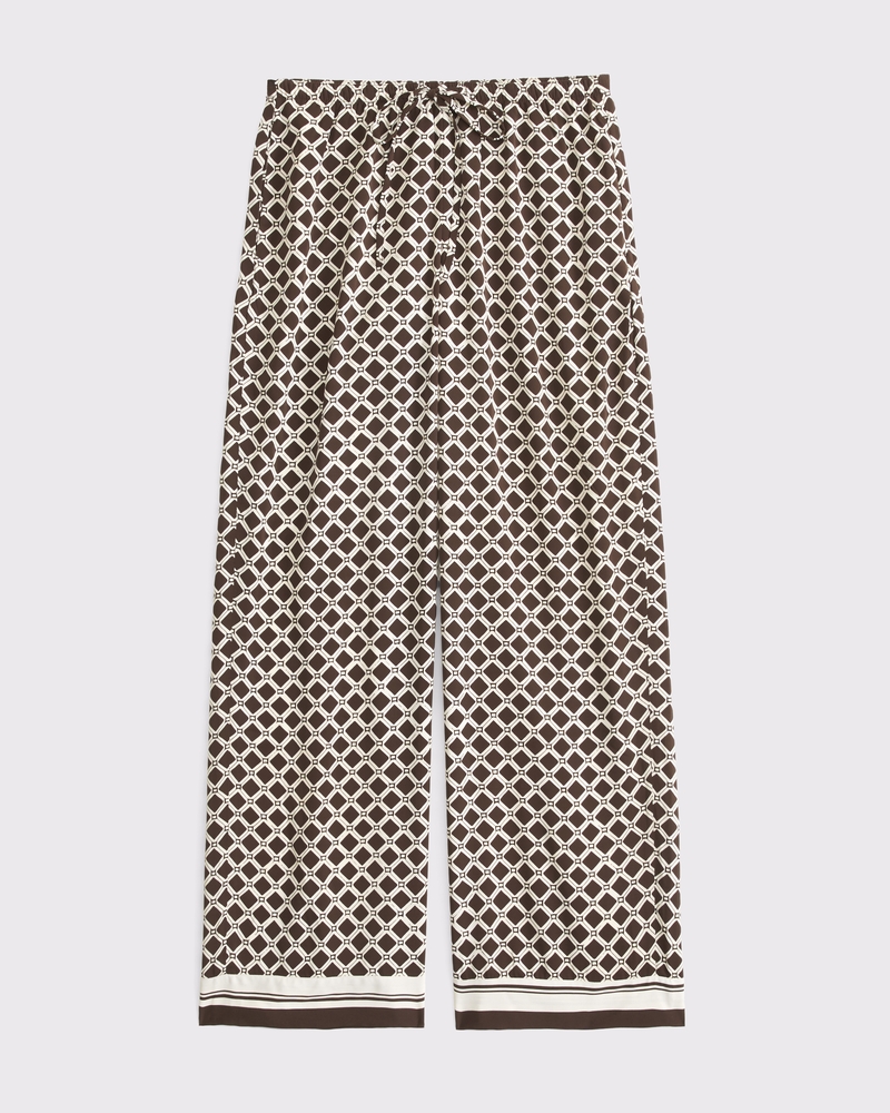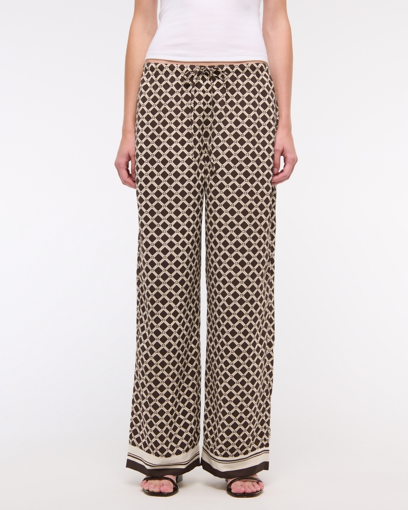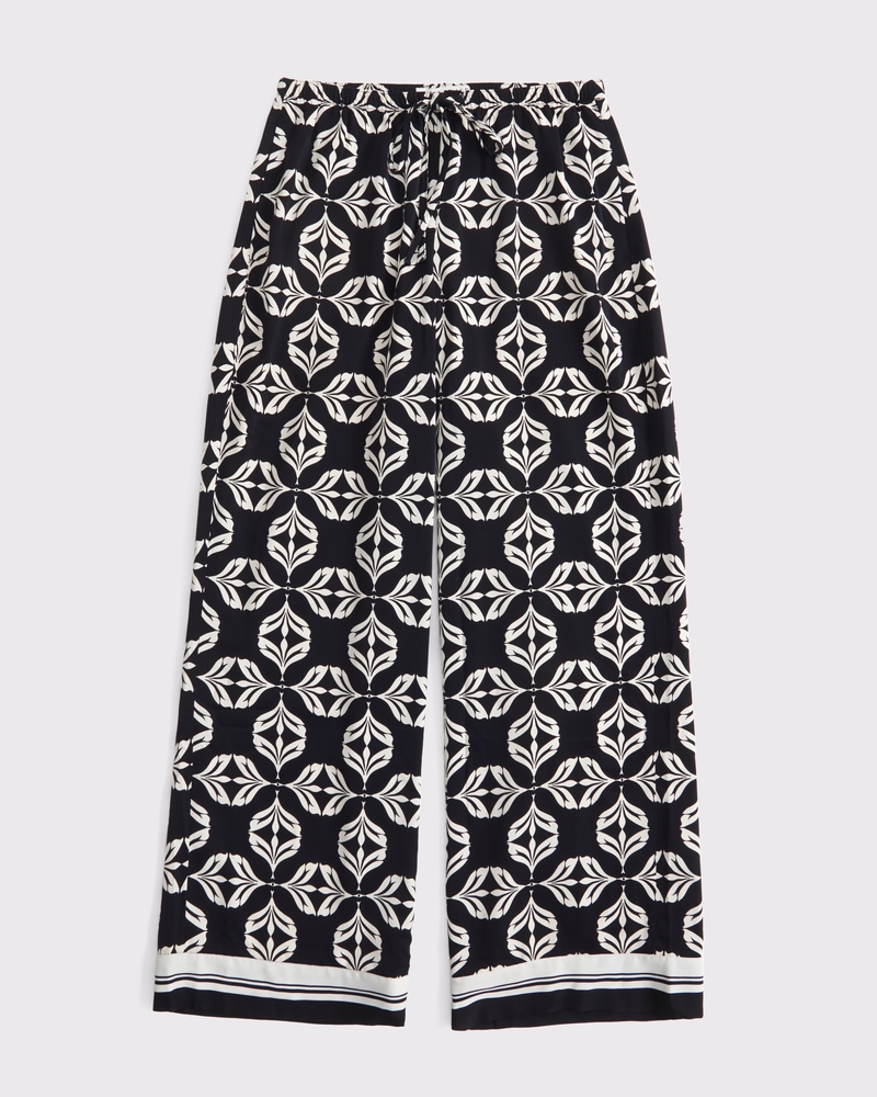 Wide leg pants in a soft drapey fabric. Features pockets and a pull-on style elasticated waistband with a drawstring for an adjustable rise. Imported.