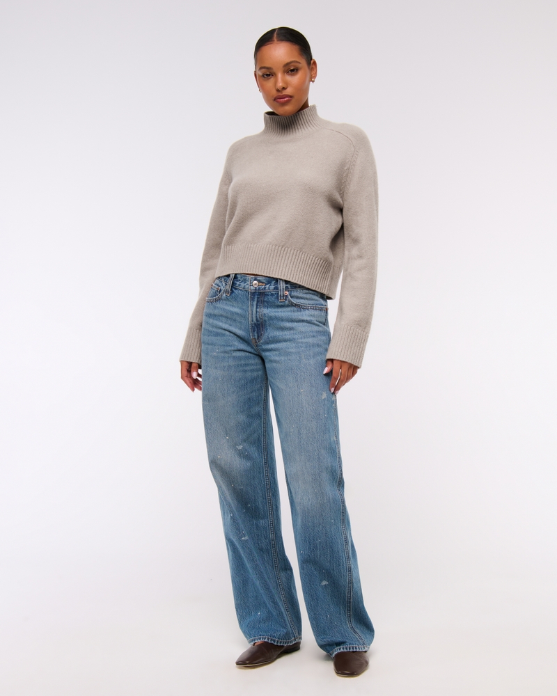 Easy-fitting sweater in our super soft sweater yarn fabric, featuring a mock neckline and rib trims at the neckline, cuffs and hem. Pairs perfect with your favorite mini skirt! Imported.