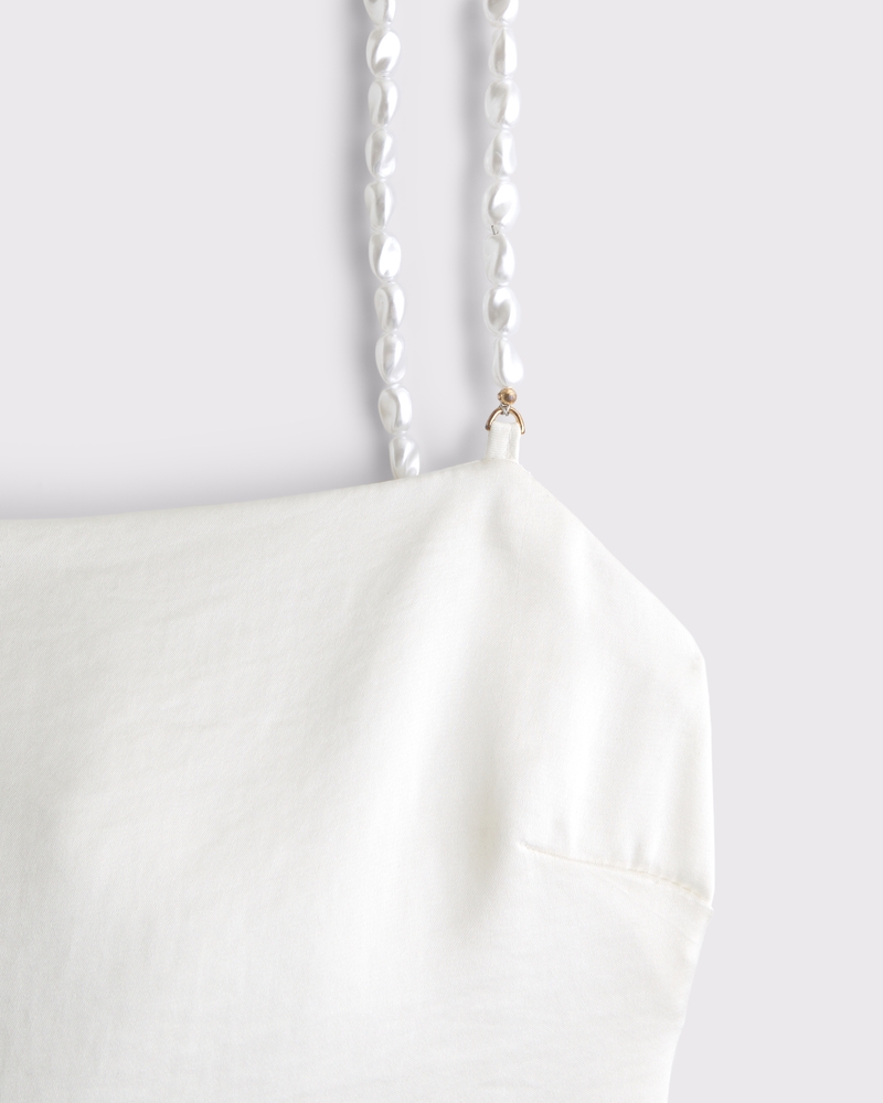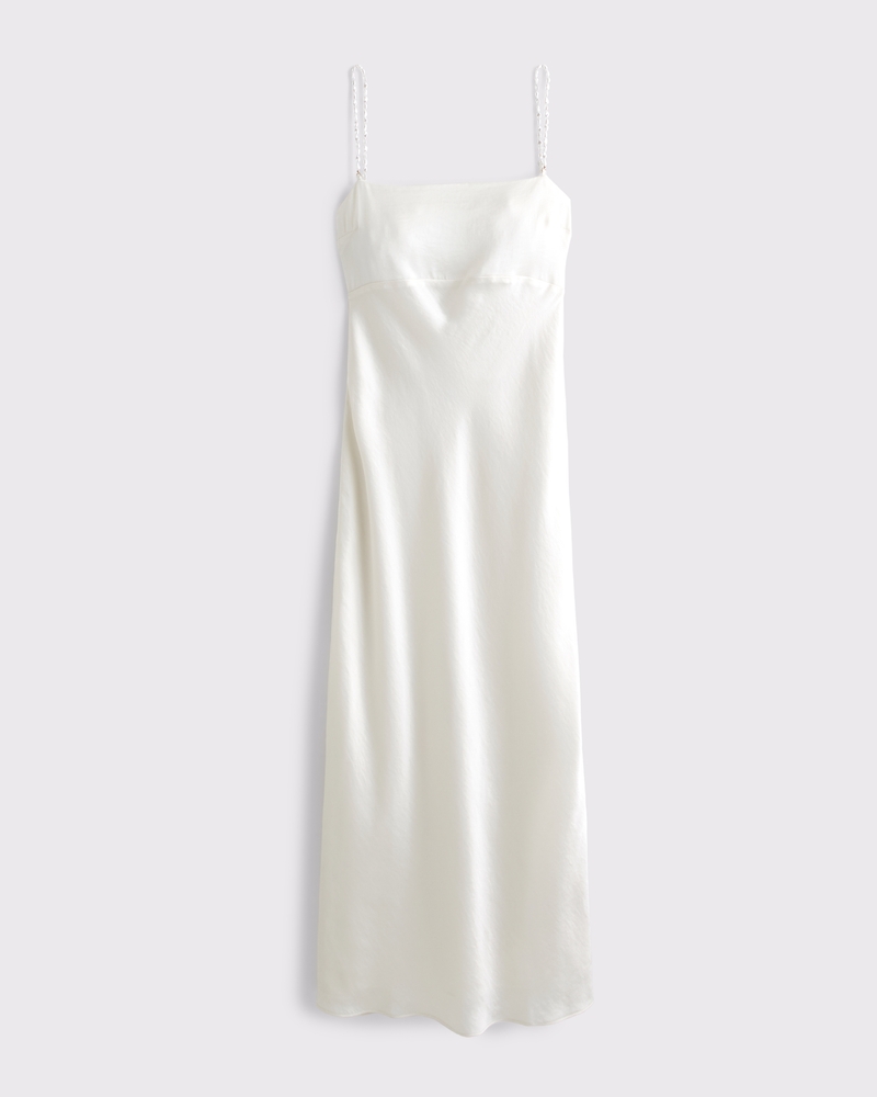 Flattering slip maxi dress in our textured satin fabric, featuring on-trend faux pearl straps and a low cowl back detail. Imported.