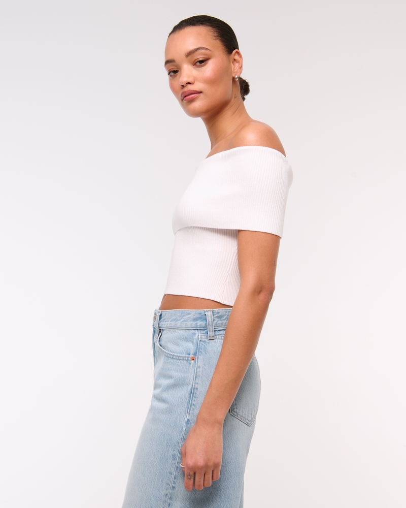 Foldover Off-The-Shoulder Sweater Top