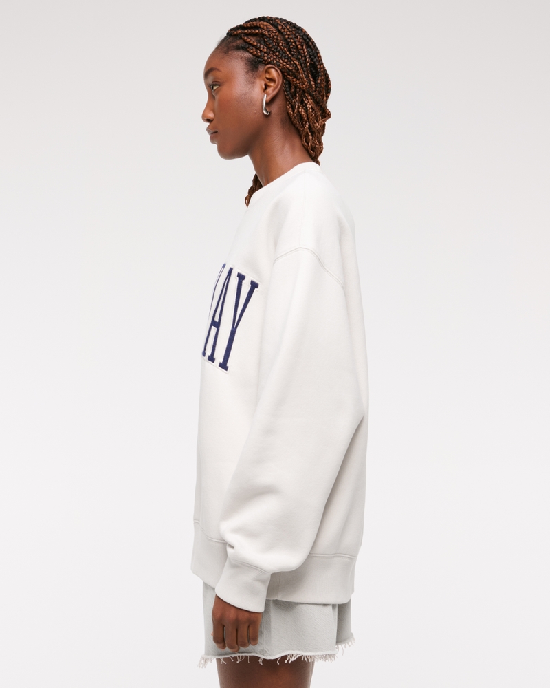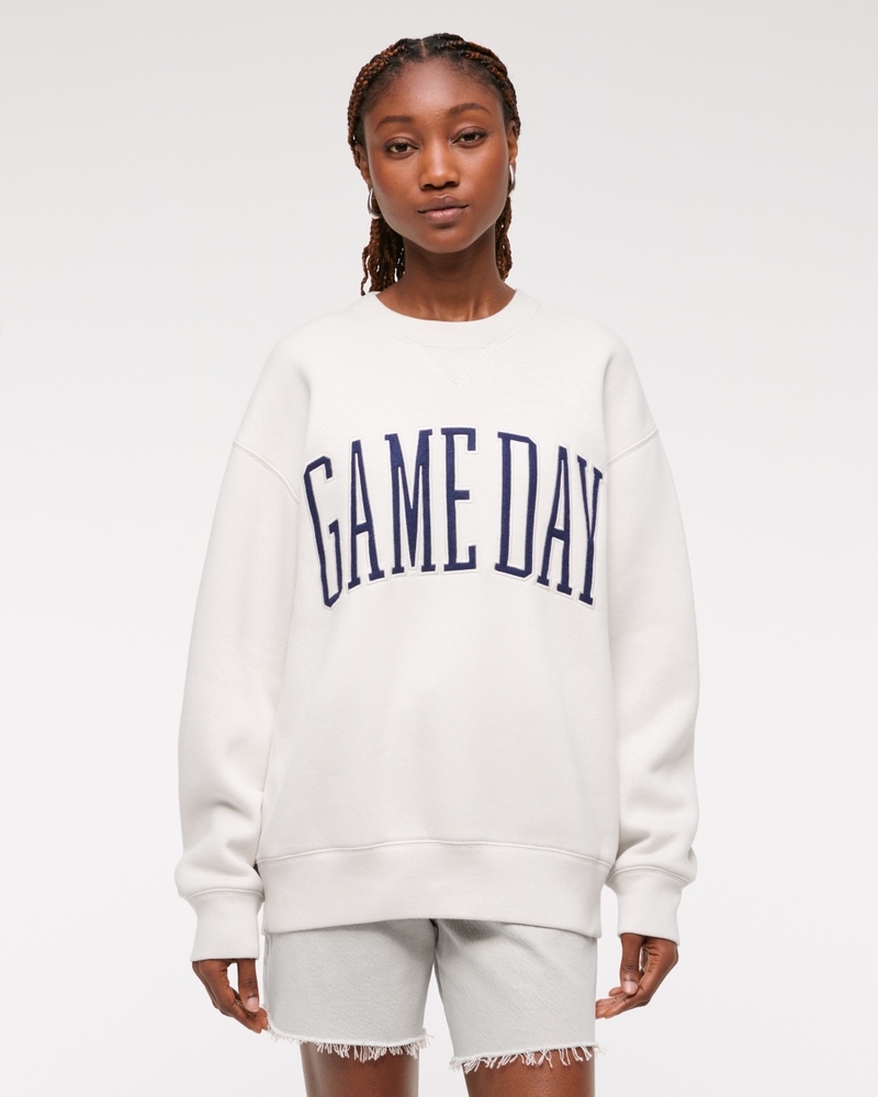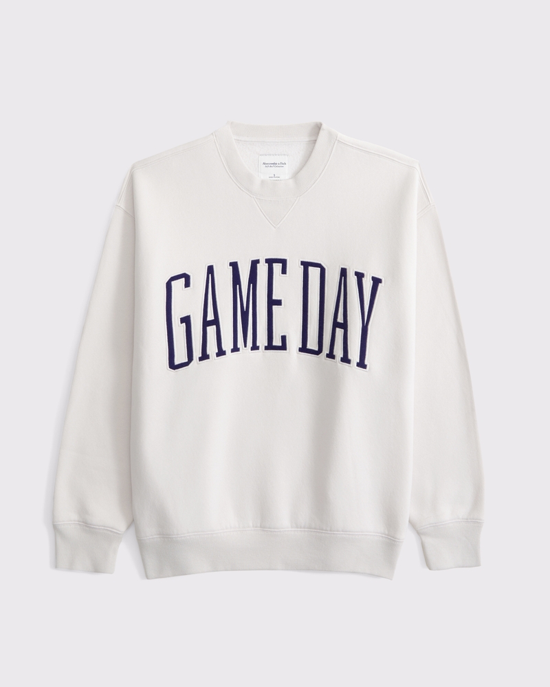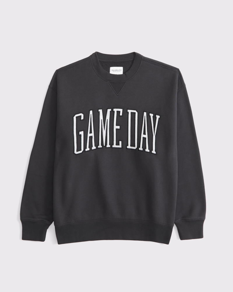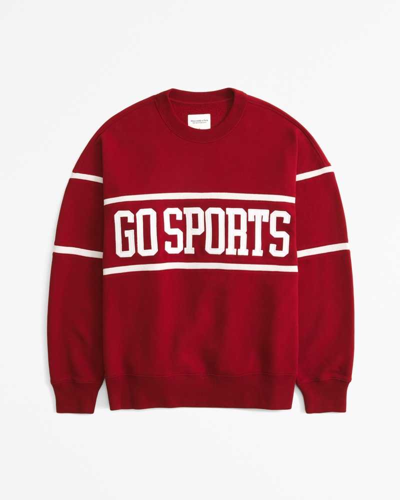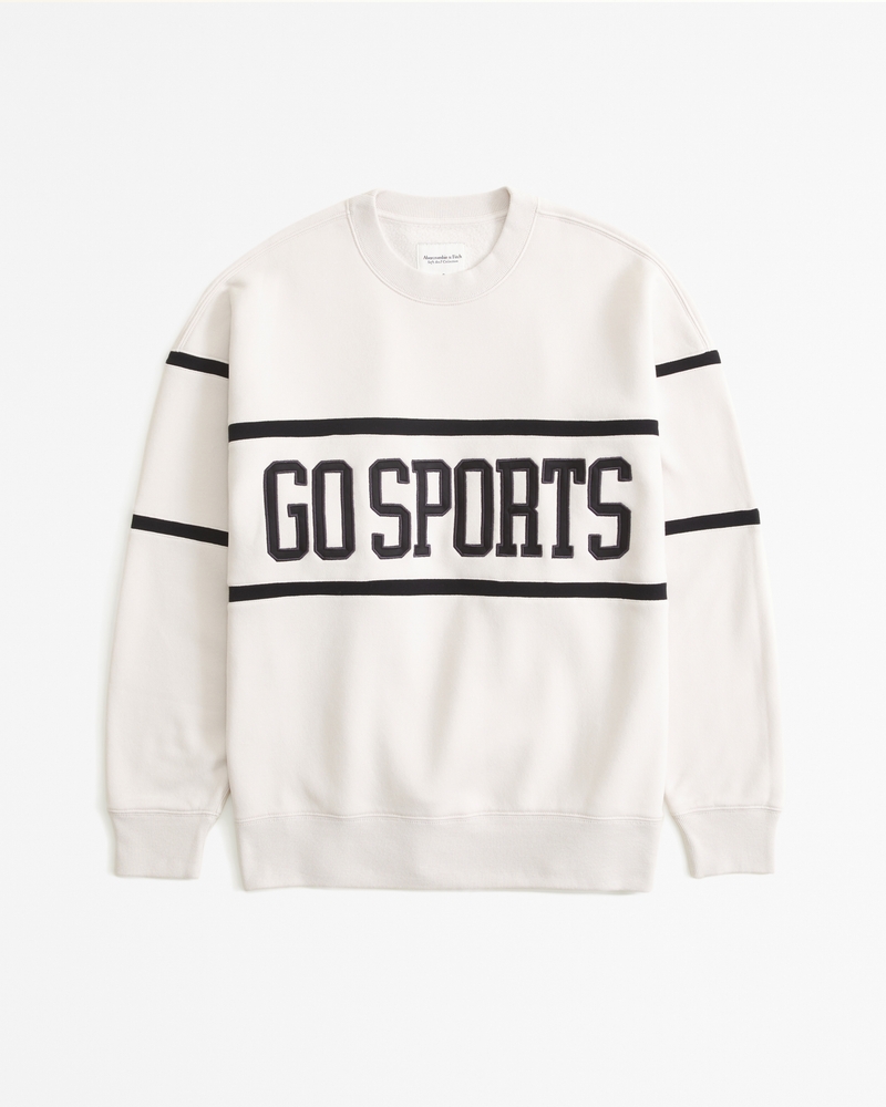 Comfy sweatshirt in our Soft A&F MAX midweight fabric and legging-friendly length, featuring a relaxed chest width, Go Sports graphic detail at chest, crew neckline and banded hem and cuffs. Imported.