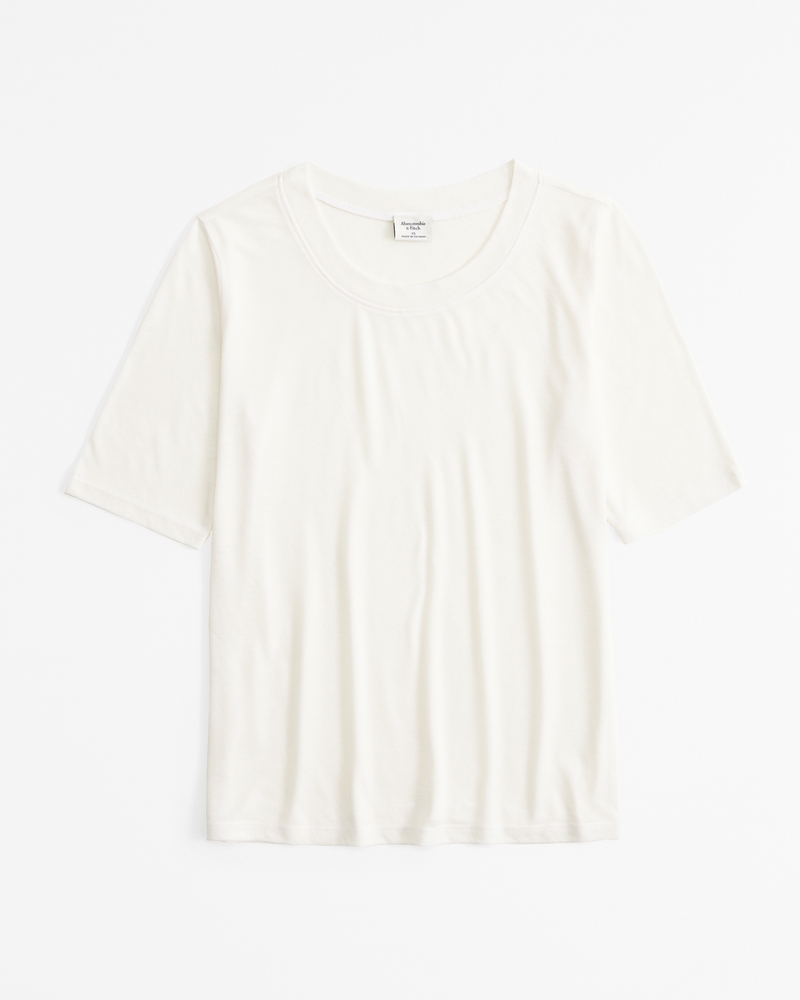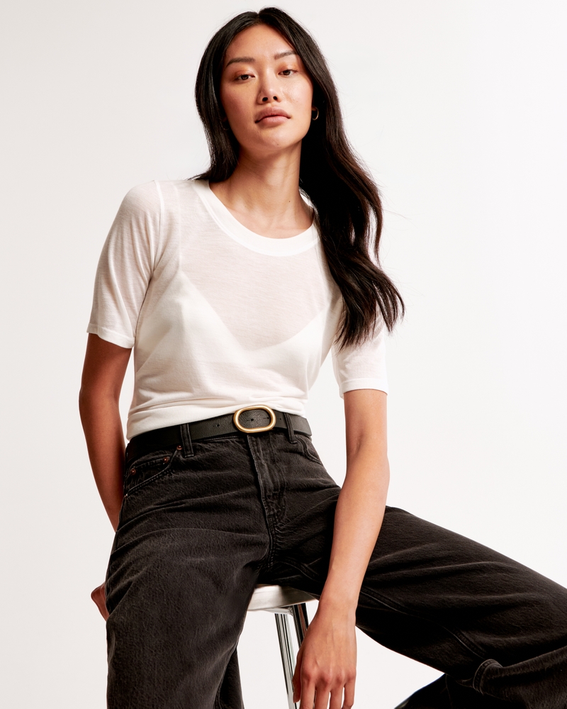 Half-Sleeve Sheer Jersey Crew Tee