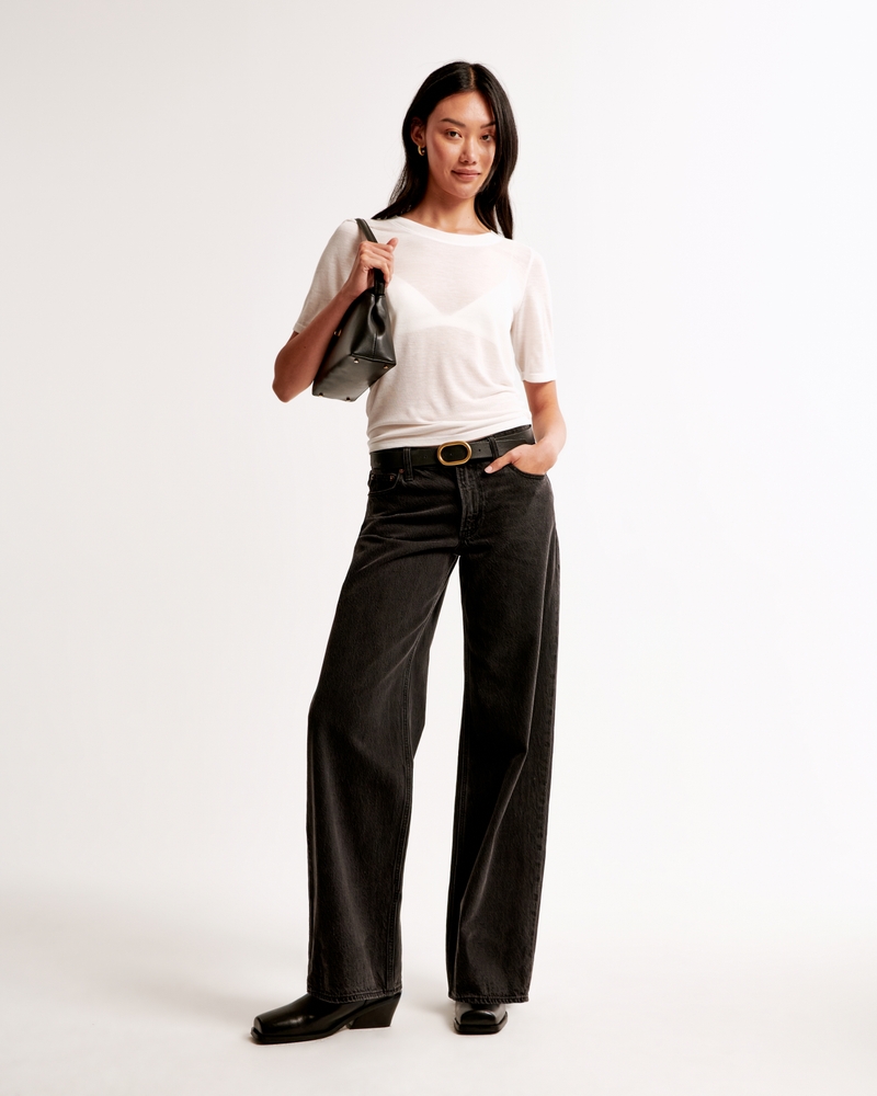 Slim-fitting half-sleeve tee in our new sheer jersey fabric, with a crew neckline and all-over sheer details. Imported.