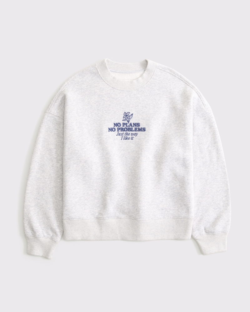 Our new comfy sweatshirt in our Soft A&F MAX heavyweight fabric, featuring homebody graphic detail at chest, a slightly longer length, crew neckline and banded hem and cuffs. Imported.