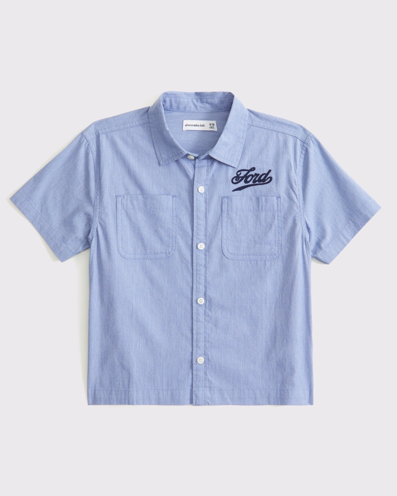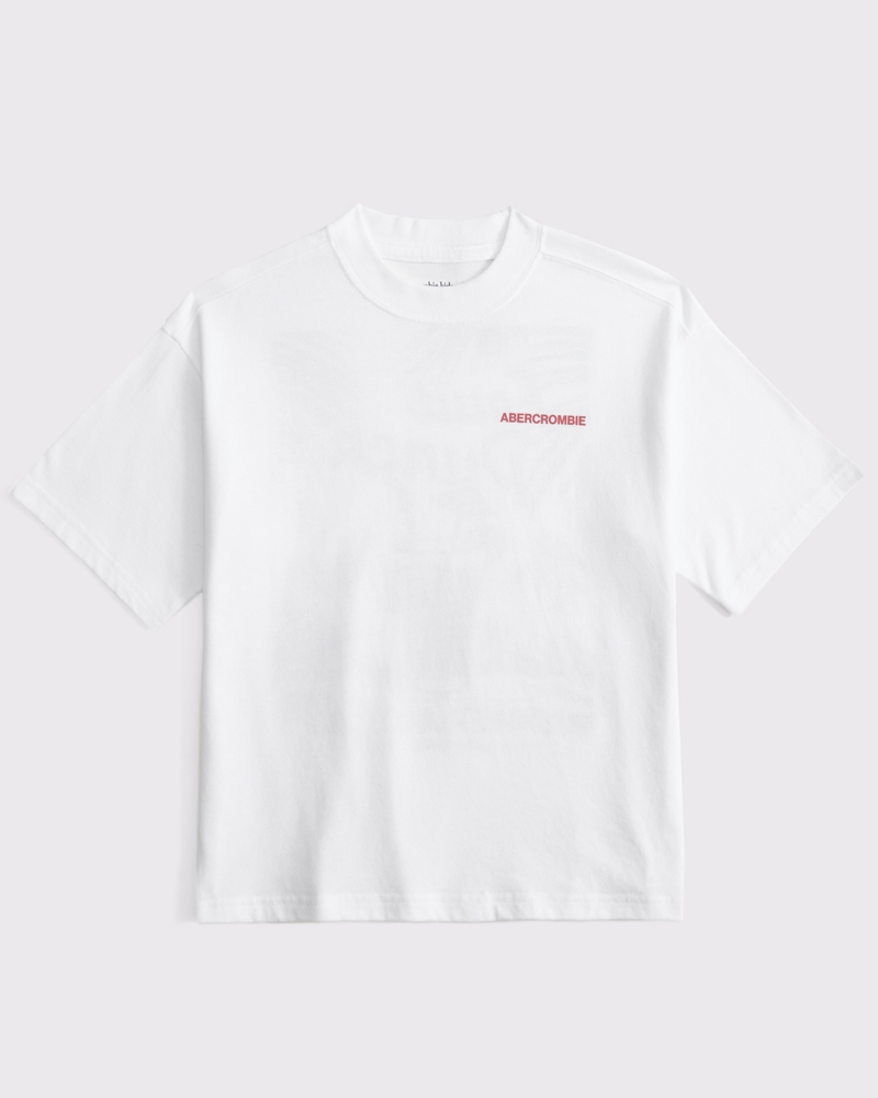 Comfortable short-sleeve tee in a soft cotton-blend fabric, with imagery graphic logo details at left chest and back and crew neckline. Imported.