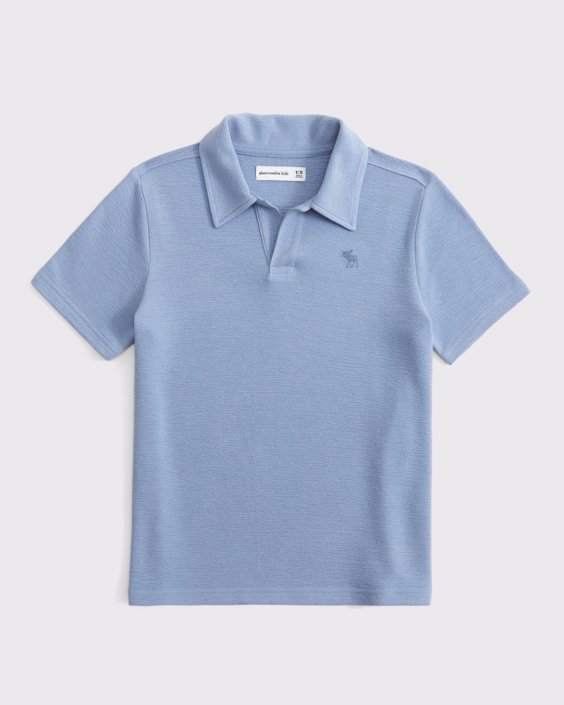 Comfortable short-sleeve sweater polo in a soft knit fabric, with embroidered icon at left chest, no-button Johnny collar and banded hem and cuffs. Imported.
