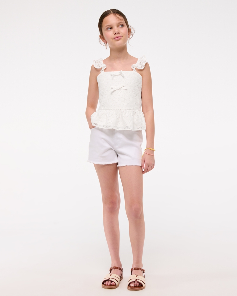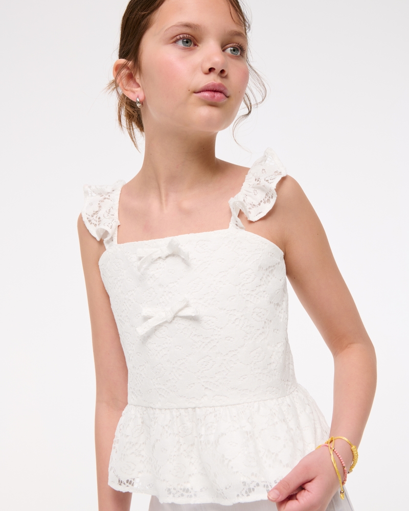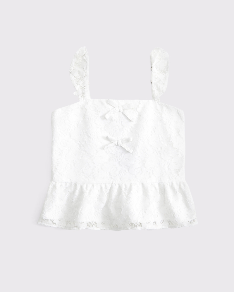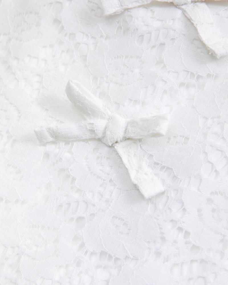 Versatile top in our super soft fabric, featuring all-over lace details and bow details down the chest. Imported.