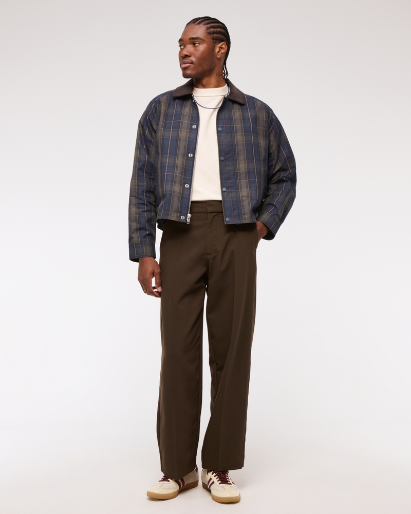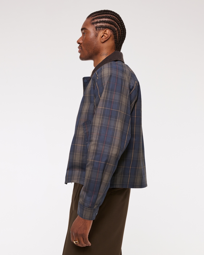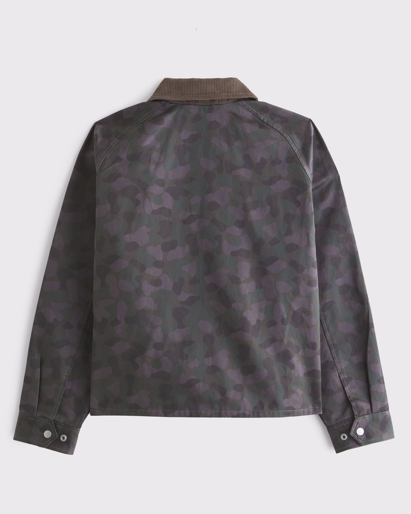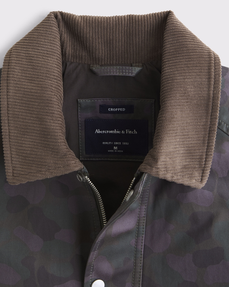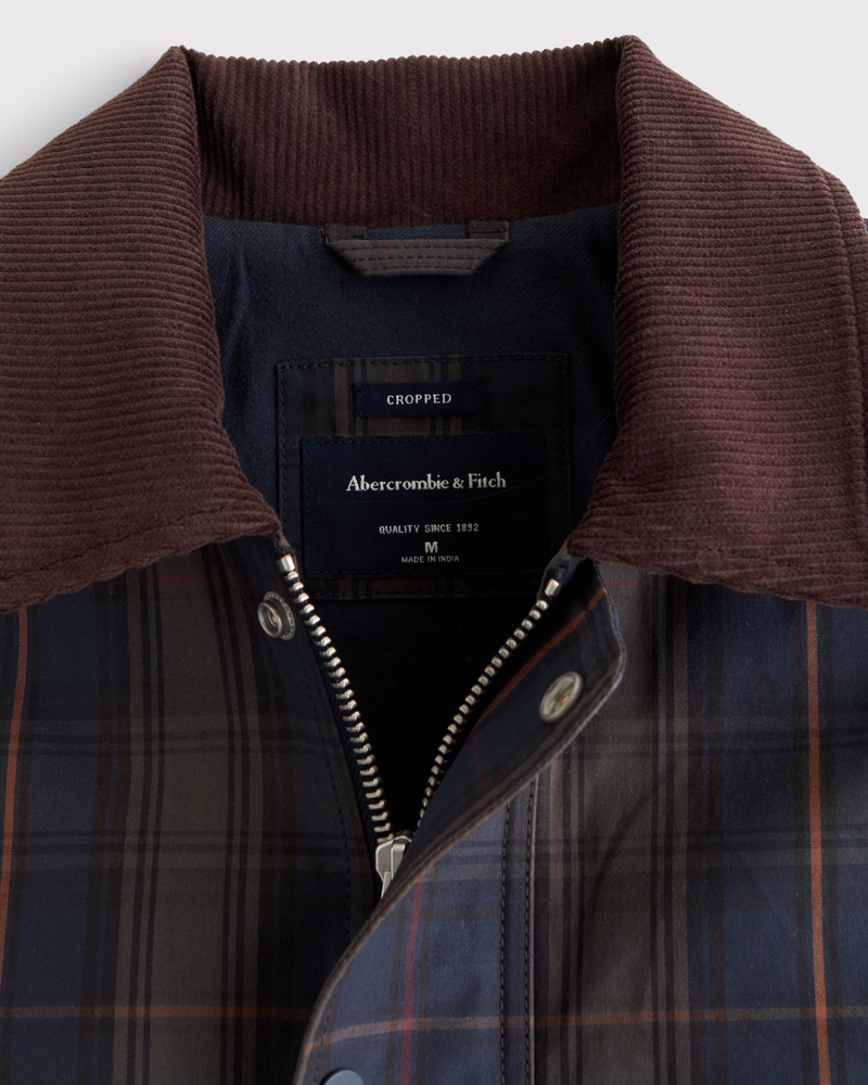 Our new lightweight trucker-style jacket in a cozy waxed cotton fabric and cropped length, featuring a relaxed-fit silhouette, side pockets with interior chest pocket, corduroy fold-down collar, zip- and snap-up front and lightweight interior lining. Imported.