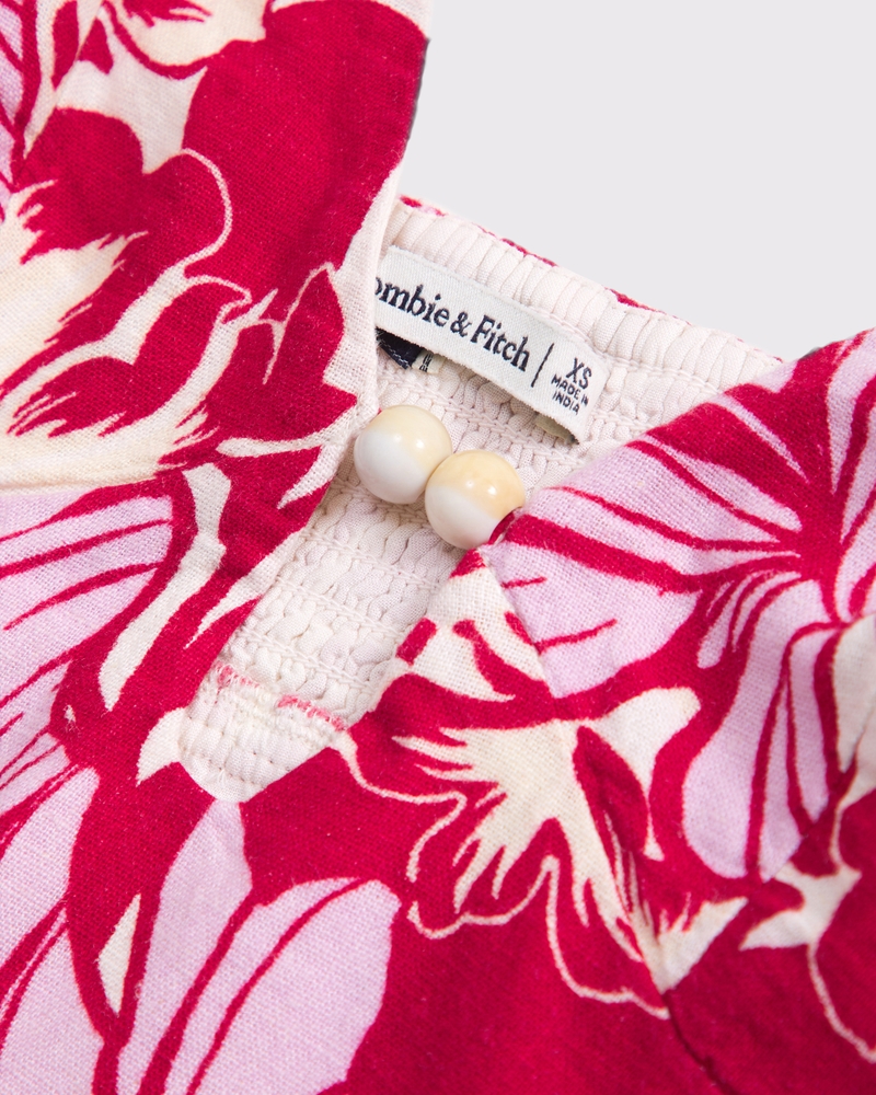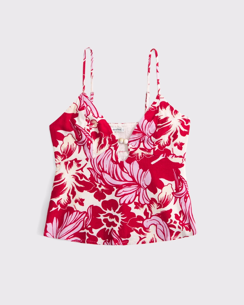 Flattering cami top in a soft linen-blend fabric, with on-trend beaded details, adjustable straps, back smocking and notched neckline. Imported.