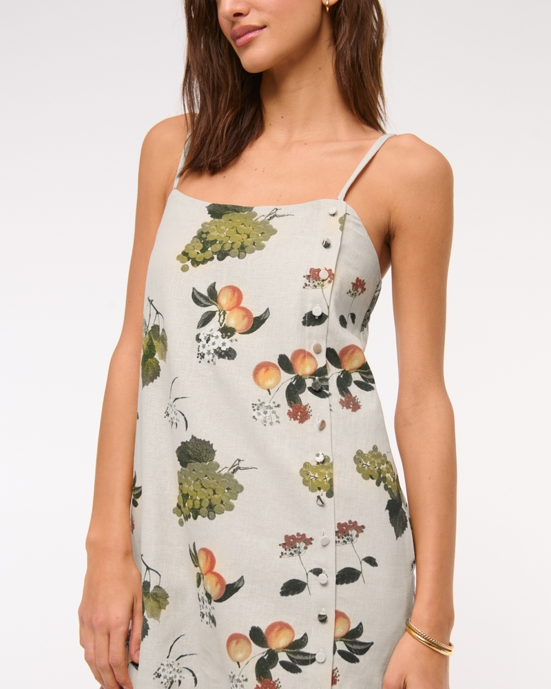 Flattering mini skort in our classic linen-blend fabric, featuring button-through detail, built-in shorts and adjustable cami straps. Imported.