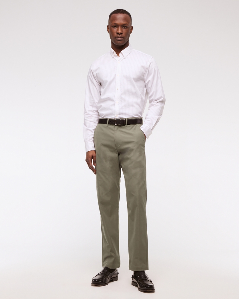 Classic 5 inch (13 cm) plainfront shorts in a textured linen-blend fabric, featuring a soft elastic comfort stretch waistband, pockets throughout with hidden cellphone zip pocket and button and fly closure. Imported.
