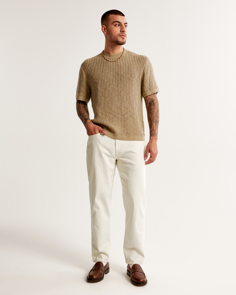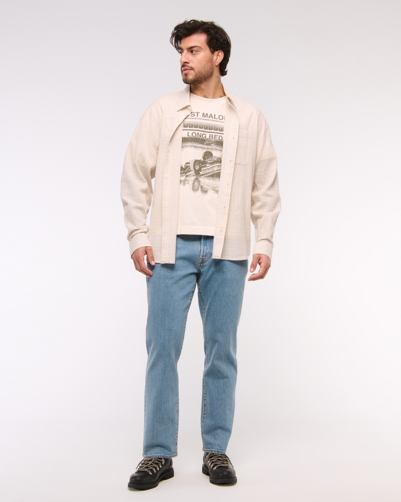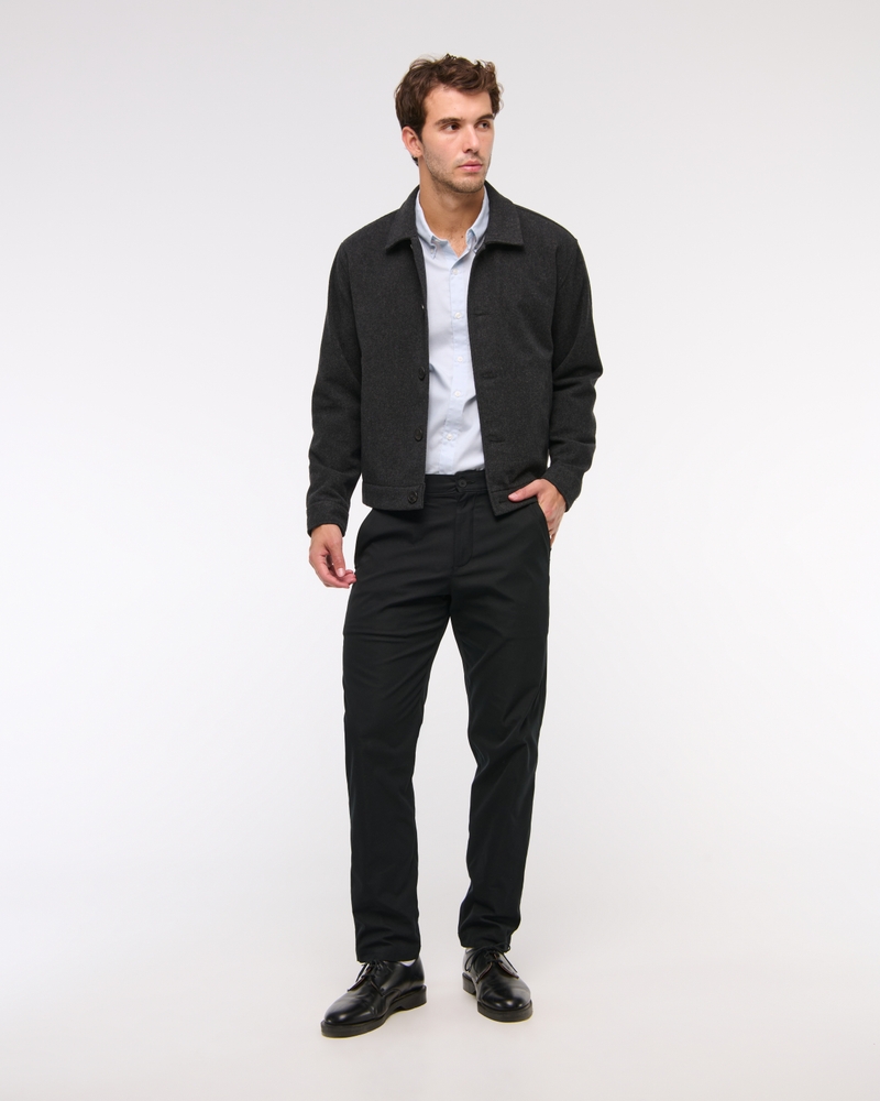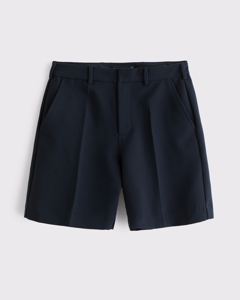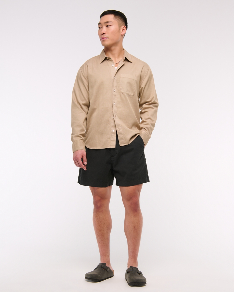 Classic 5 inch (13 cm) plainfront shorts in a textured linen-blend fabric, featuring a soft elastic comfort stretch waistband, pockets throughout with hidden cellphone zip pocket and button and fly closure. Imported.