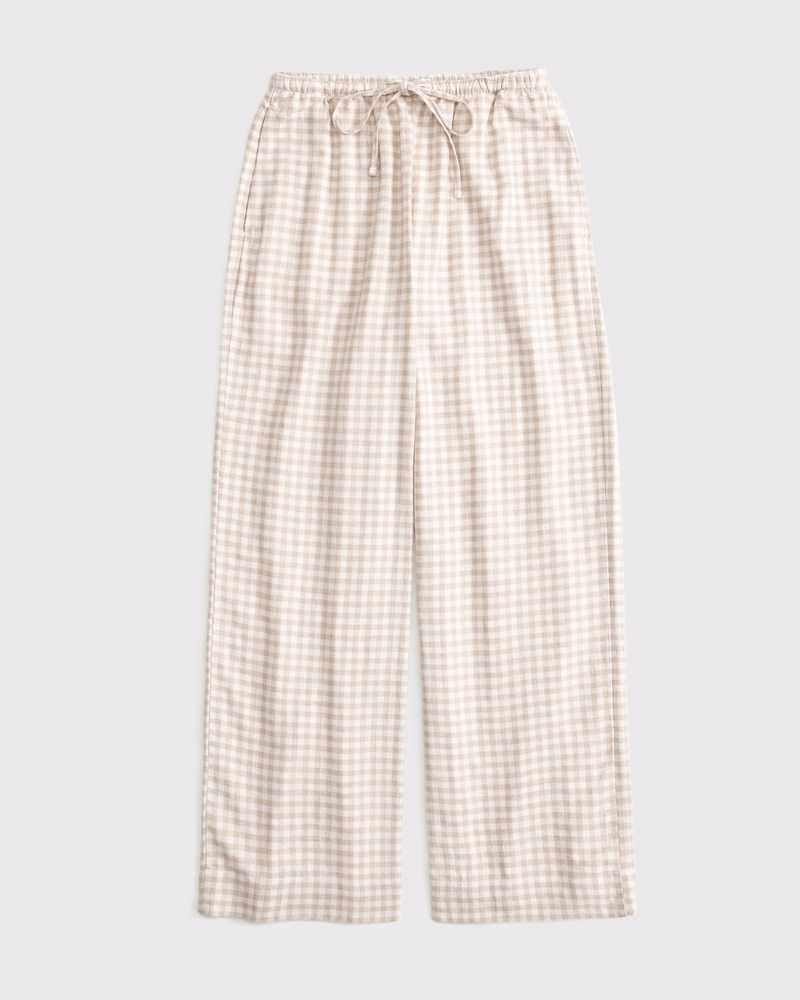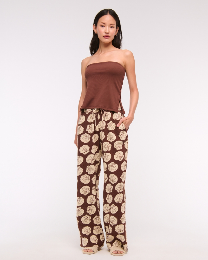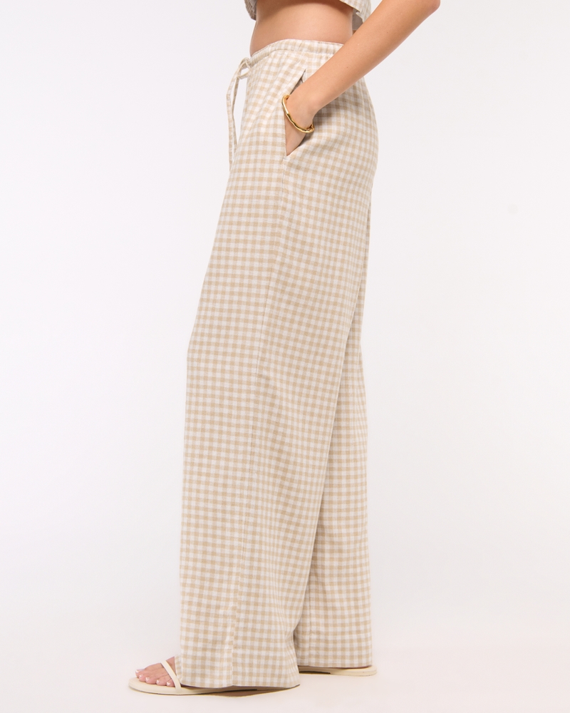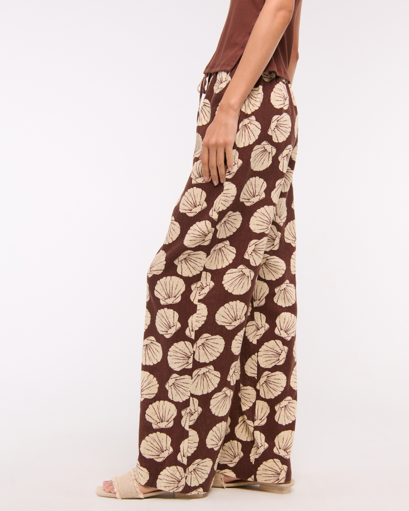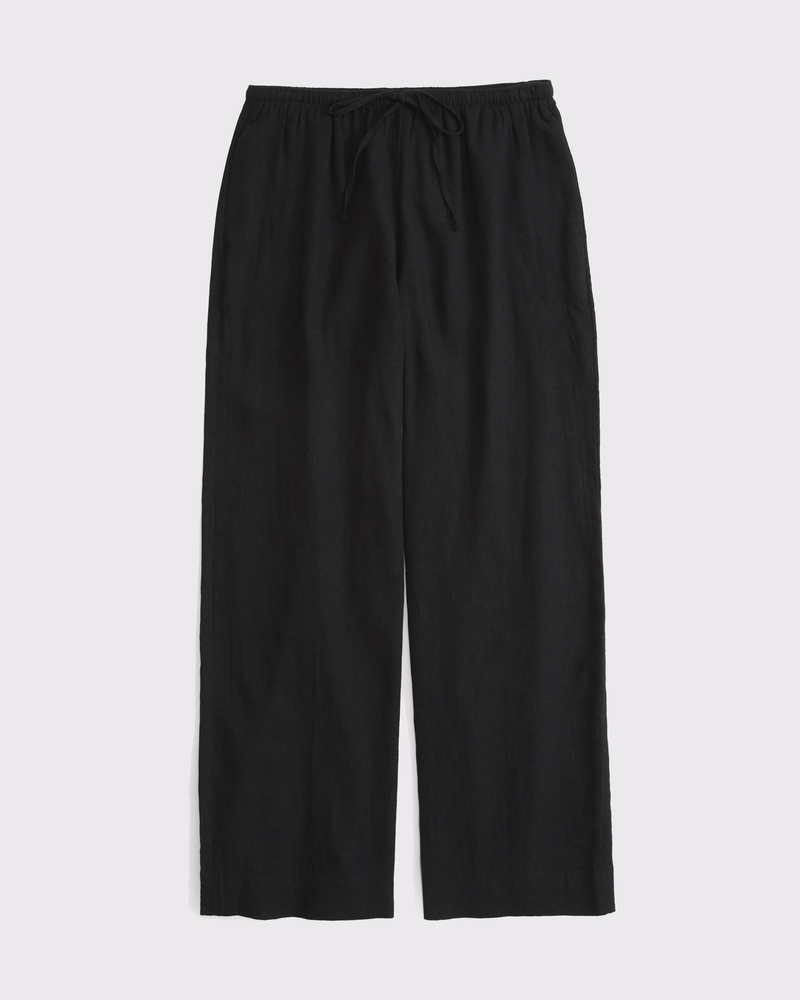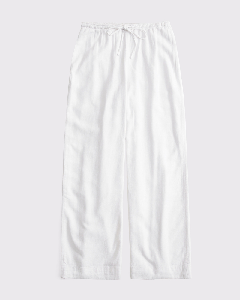 Wide leg pants in a breezy linen-blend fabric. Features a pull-on style elasticated waistband with a drawcord detail for an adjustable rise. Imported.